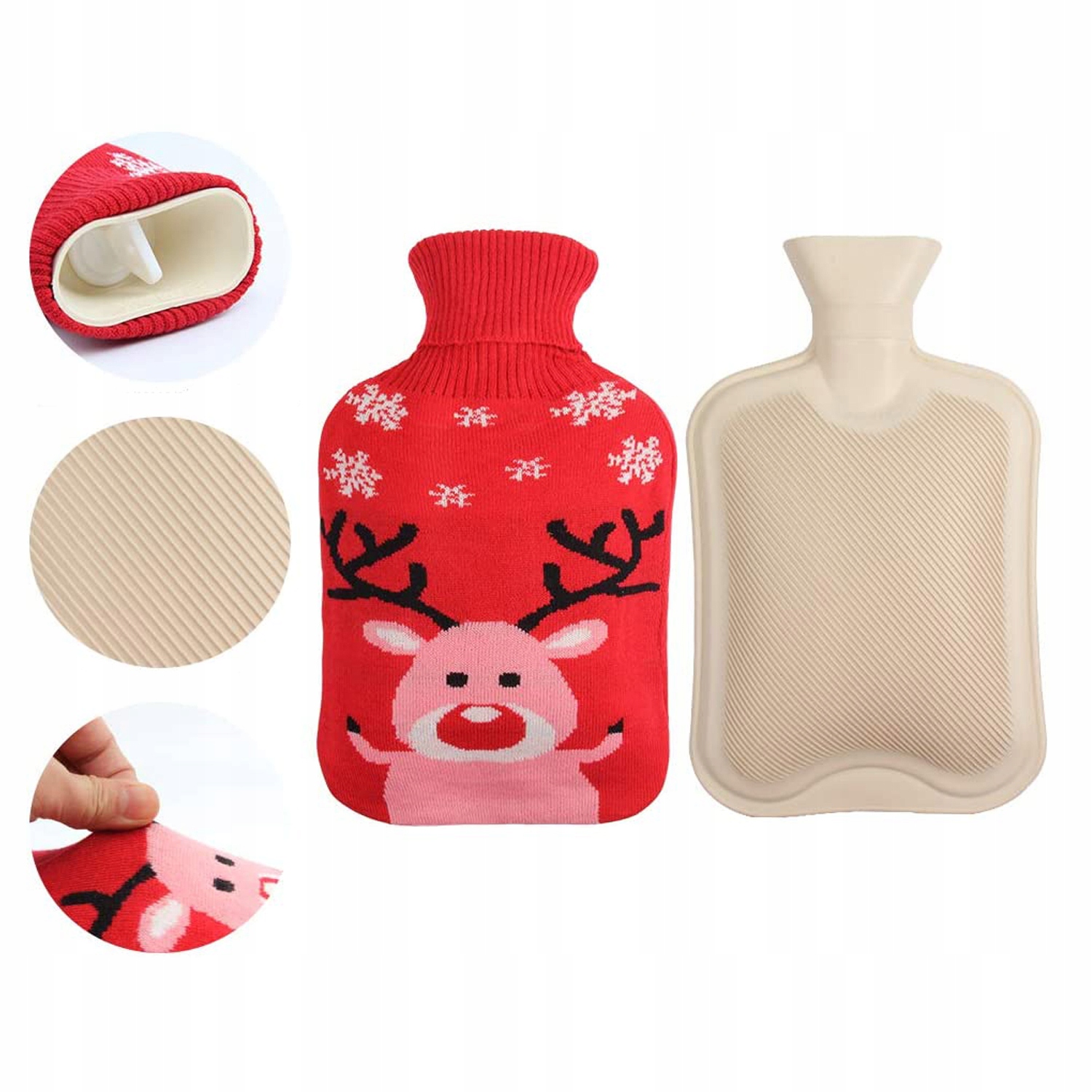 - 🦌 Большая вместимость:Отлично сохраняет тепло, сохраняет тепло дольше, чем обычные резиновые бутылки. Изготовлен из мягкого трикотажа (красного цвета), чехол легко снимается и можно стирать. в стиральной машине.