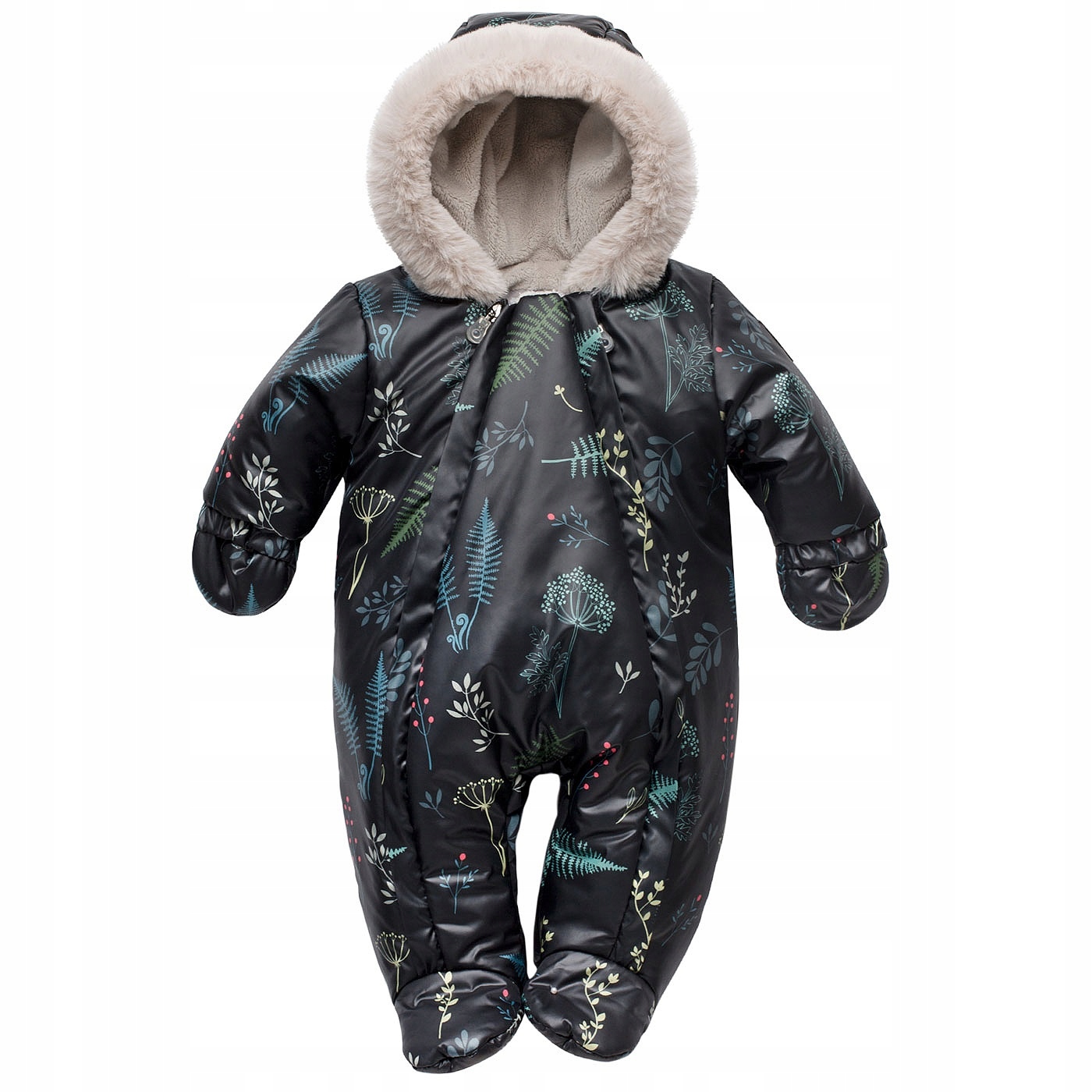 Черный детский зимний комбинезон с интересным растительным принтом – незаменимый элемент осенне-зимнего гардероба малыша. Верхний слой костюма – качественный 100% полиэстер, устойчивый к ветру и влаге. Подкладка из приятного на ощупь искусственного меха серого цвета, имитирующего мех ламы.