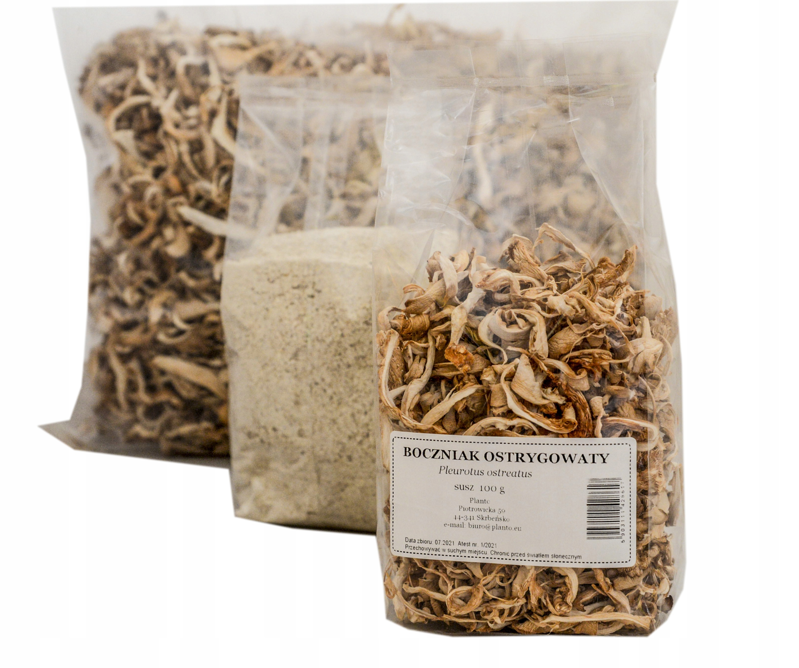 Oyster Oyster ( pleurotus ostreatus) - гриб, оцененный гурметами. Его свойства здоровья и питания также являются значительными. Он содержит множество ингредиентов, которые оказывают положительное влияние на жизнеспособность нашего организма. Стоит подчеркнуть, что устричные грибы принадлежат группе лекарственных грибов, а также в сушеной форме используются в микотерапии. Оставшиеся аукционы имеют продукты с емкостью 500 г и 1000 г. Мы предлагаем продукт с утверждением - Сертификат № 1/2021 (фотография сертификата появляется в галерее), дата урожая 07.2021