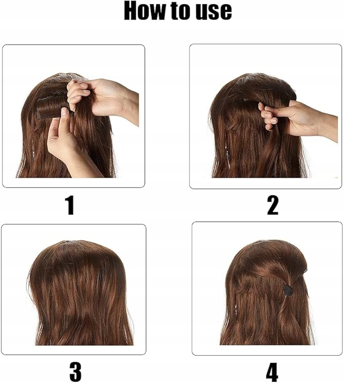 Простота в использовании. Просто поднимите часть волос и поместите под нее пучок. Переместите часть волос, чтобы прикрыть их. Все нормально. Он не только придаст вашей голове более полный вид, но и изменит форму вашего лица, сделав вас красивым и элегантным.
