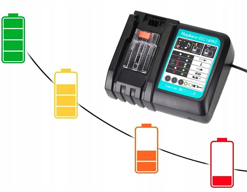 Совместимость с напряжением 14,4 В/18 В. для зарядки литий-ионных аккумуляторов электроинструмента Makita (не применимо к 10,8 В).