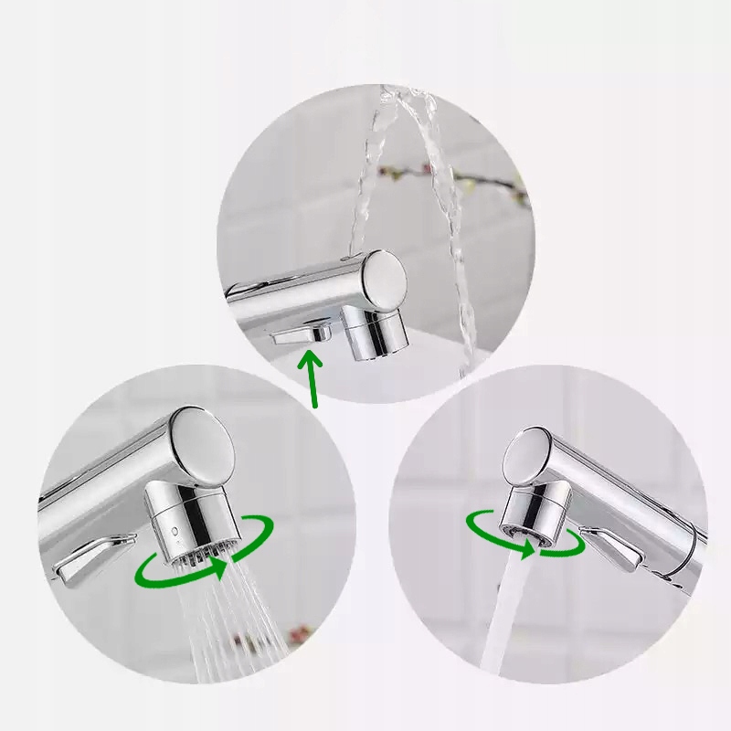 Изделие имеет выдвижной излив, который очень удобно использовать в ванной или на кухне. Облегчает ополаскивание посуды, наполнение кувшинов, ополаскивание раковины и мытье головы.