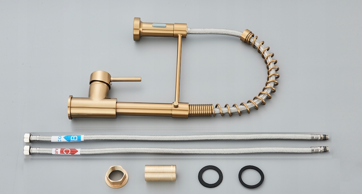 КУХОННЫЙ Смеситель для мойки, ВЫДВИЖНОЙ НОСИК, ЗОЛОТО