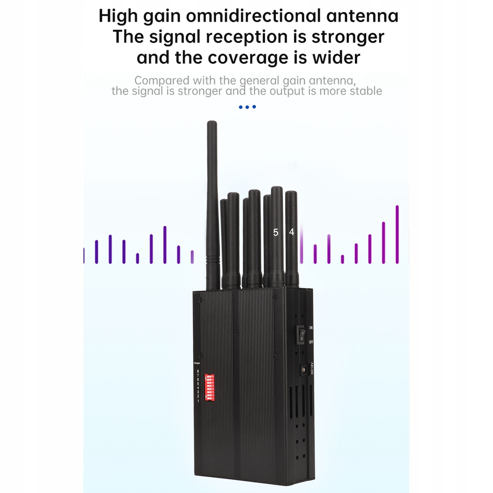 1. Эффективный перехват: блокатор сигнала рук может эффективно захватывать CDMA, GSM, DCS, 2G, 3G, 4G, Wi -Fi, GPS и другие беспроводные сигналы и другие электронные устройства вокруг связи и передачи без какого -либо негативного влияния.