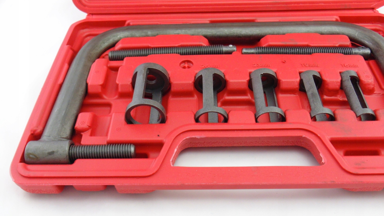 Надежное и практичное устройство, которое значительно упрощает и ускоряет разборку клапана. Набор для сборки и разборки головных клапанов. Устройство адаптировано для работы с дизельными и бензиновыми двигателями. В комплект входят пять специальных насадок, адаптированных к дискам клапанов разного диаметра. Устройство позволяет производить замену клапанов, обкатку клапанов, замену клапанных пружин и замену сальников клапанов.