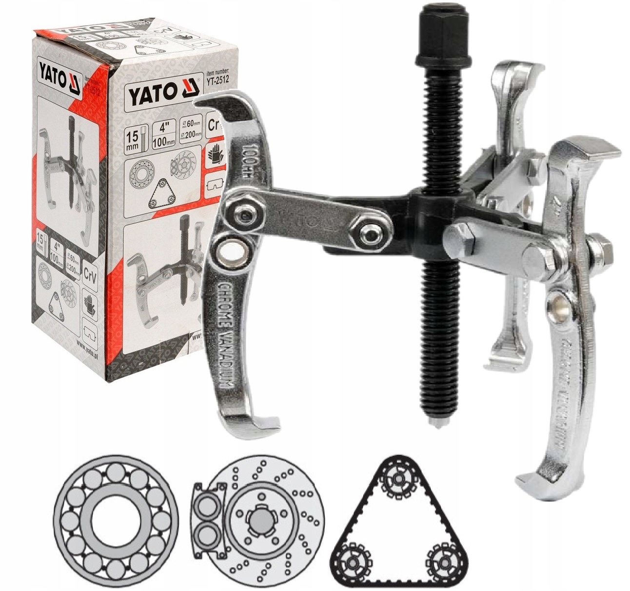 СЪЕМНИК ТРЕХРУЧНЫЙ ДЛЯ ПОДШИПНИКОВ 60-200мм 100мм YATO YT-2512