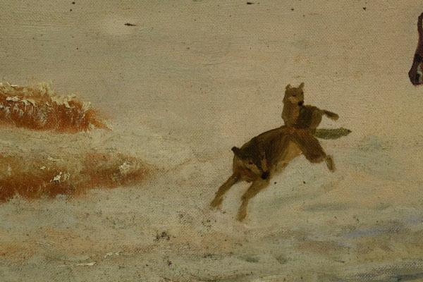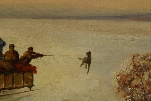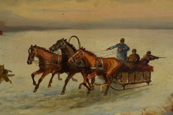 старая масляная живопись, нарисованная на холсте, расположенная на растяжке. На картинке изображена зимняя охотничья сцена. На переднем плане вы можете увидеть группу мужчин, катающихся на лошади. Сани тянет двух сильных лошадей. Несколько мужчин сидят на санях - один из них держит, а другой нацелен с оружием для диких животных. Изображение подписано в правом нижнем углу: «Филиппофф». h1> изображение сформулировано в кадре, которая является бесплатным дополнением к изображению. h1> Статус изображения хорош, мы приглашаем вас просмотреть прикрепленные фотографии. Неотъемлемая часть описания изображения.