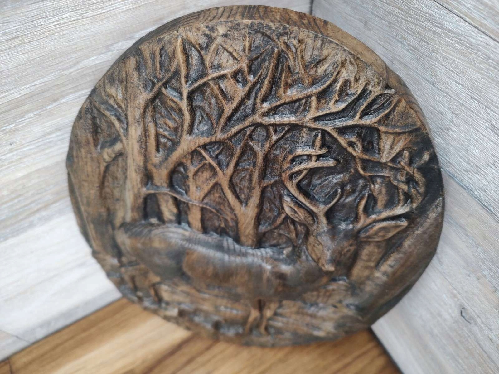 Изображение деревянного облегчения с деревом подарком для охотника Jeleń Las 30 см.