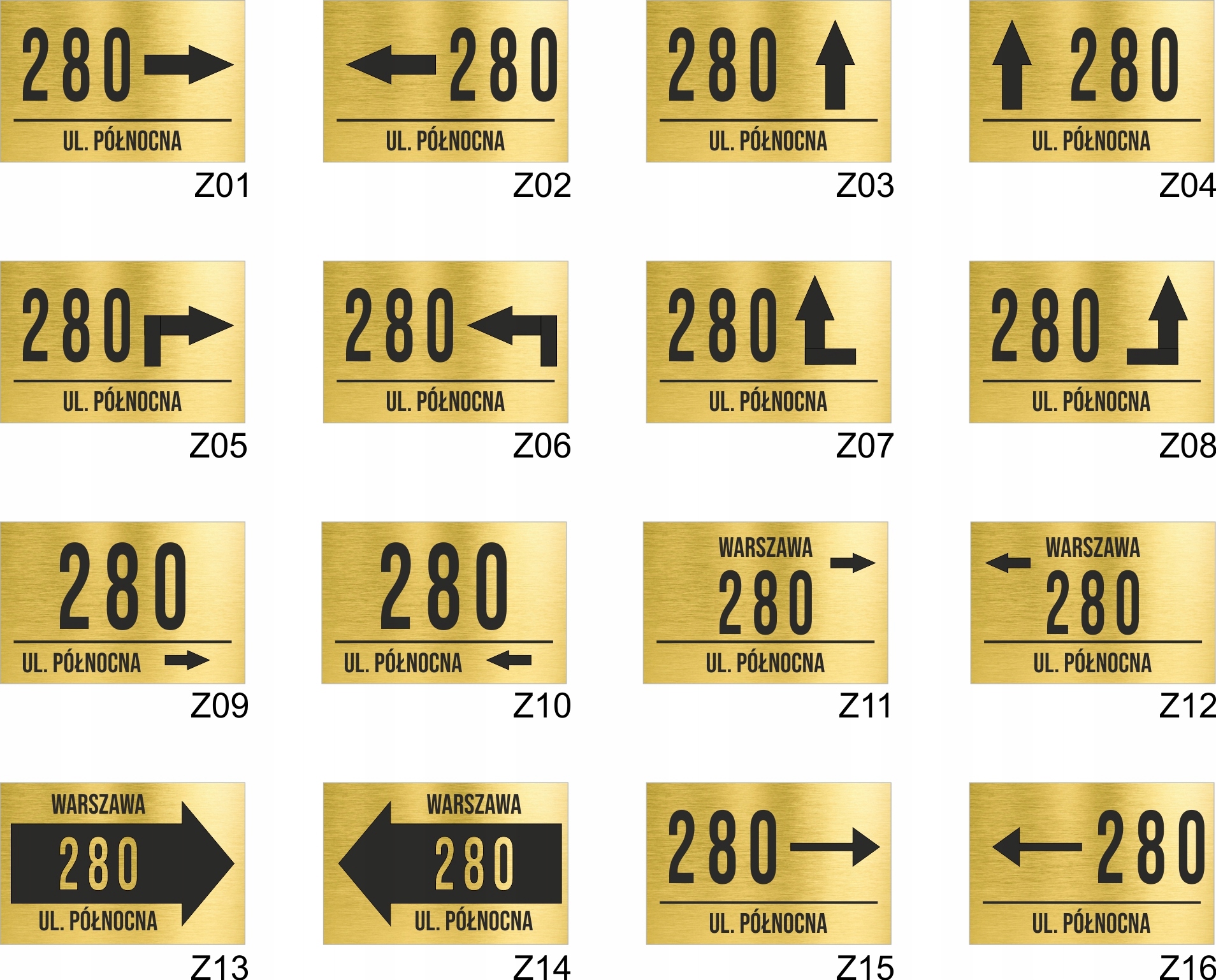 ЗОЛОТА АЛЮМІНІЄВА АДРЕСНА ТАБЛИЧКА ЗІ СТРІЛКОЮ НОМЕР БУДИНКУ 32x21см УФ-друк