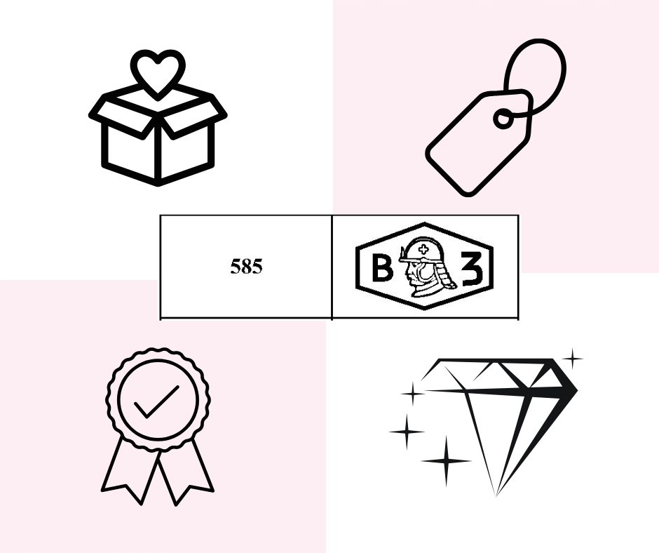 1) Ювелирные изделия, предлагаемые в нашем магазине, проверены Государственной пробирной палатой, поэтому вся продаваемая продукция изготовлена из материалов высочайшего качества. Каждое золотое изделие весом более одного грамма имеет клеймо.