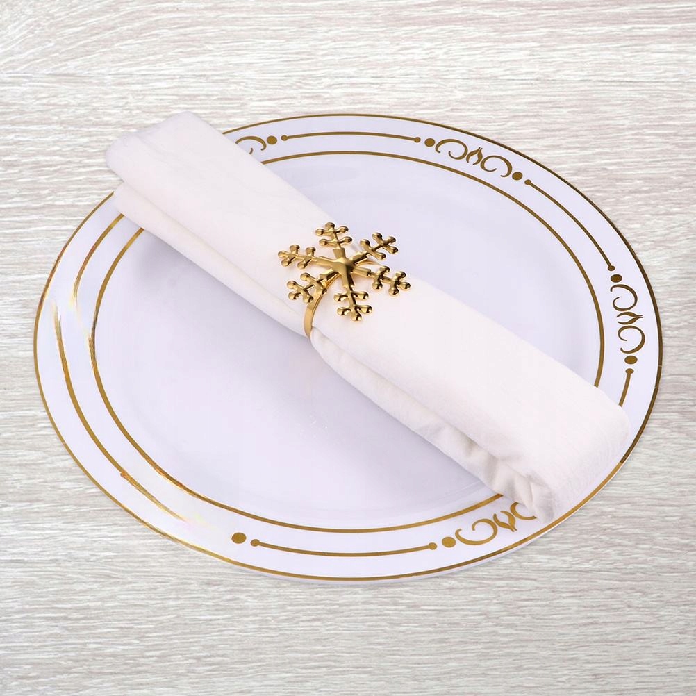 ✅ Вы стучат красивое кольцо для салфеток? Эта пряжка для салфетки в стиле снежинки станет для вас хорошим выбором. Сделано из сплавного материала, он и деликатный. Изысканное изготовление делает его творческим рождественским украшением обеденного стола для вашей вечеринки.