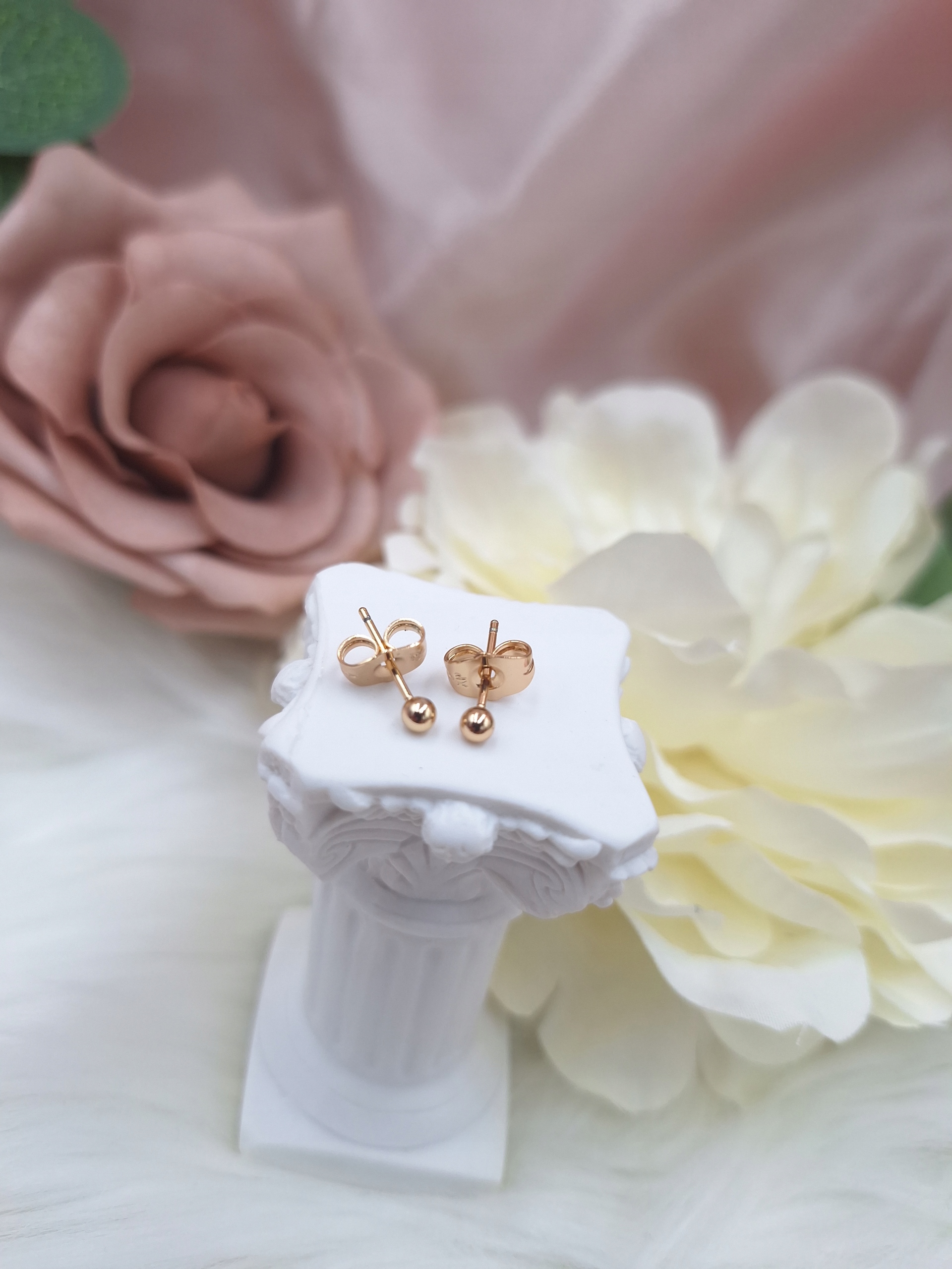 ЗОЛОТІ СЕРЕГИ, ХІРУРГІЧНА СТАЛЬ 316L, КУЛЬКИ 3 ММ