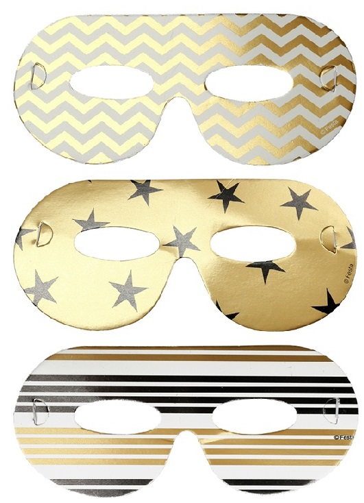 Маски для дня рождения с мотивом полос, звезд, зигзаги в золотом цвете b>