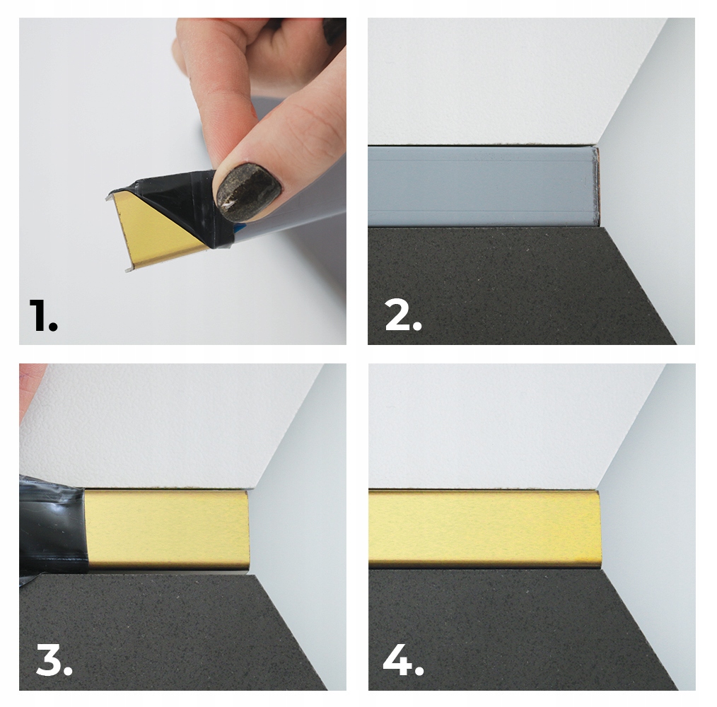 При затирке украшений сначала подгибайте заводскую часть фольги, которая бы оказалась под затиркой, при этом оставляя фольгу на видимой части полосы, чтобы защитить ее от царапин в процессе затирки.