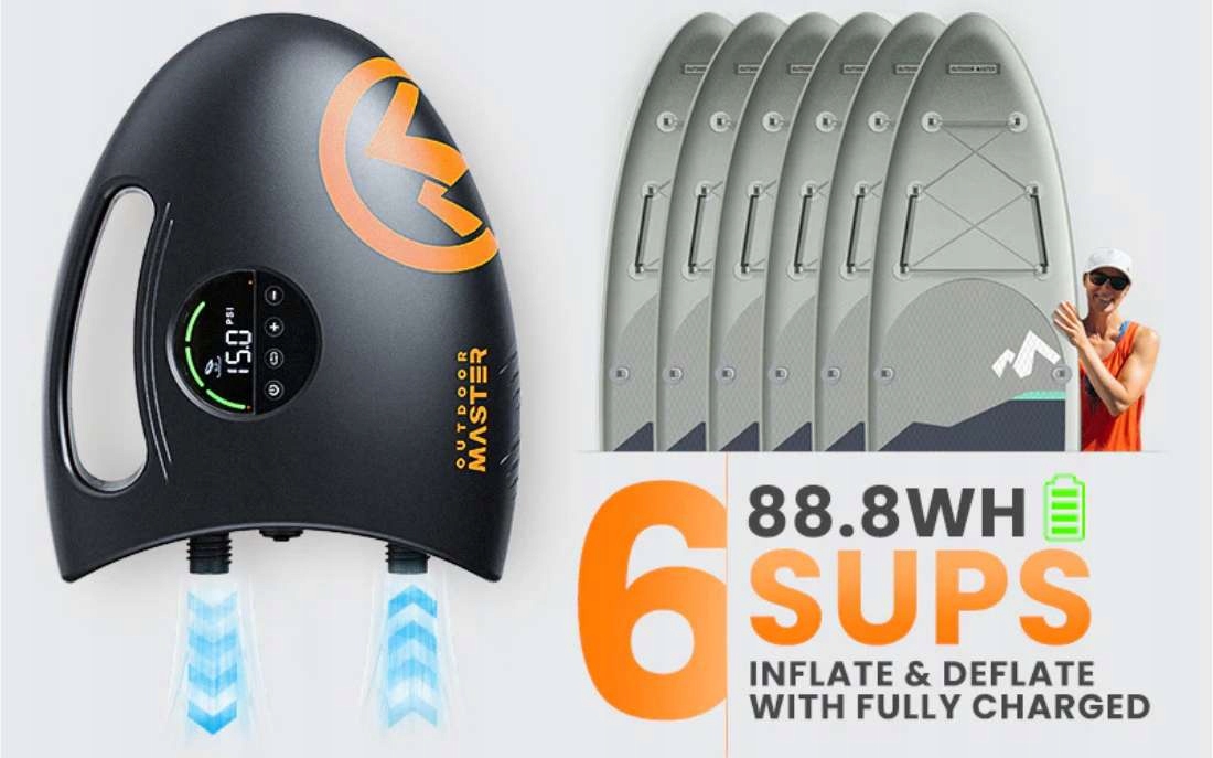 Наружный мастер -электрический насос SUP SHARK 2S с батареей, 20 фунтов на квадратный дюйм, 12 В, 88,8WH