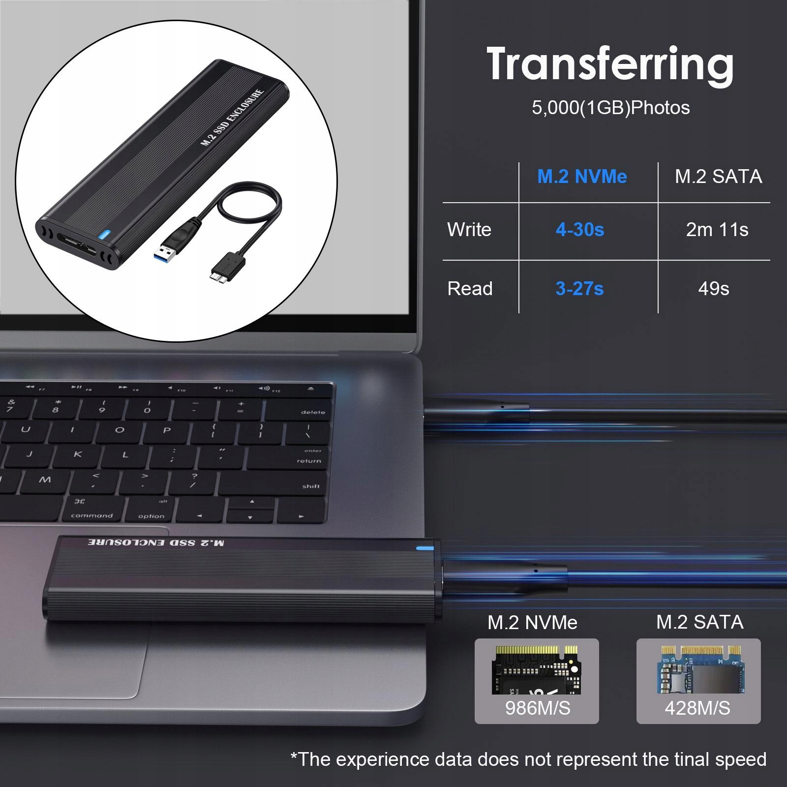 [ИДЕАЛЬНЫЙ ДИЗАЙН]: корпус M.2 со скоростью до 10 Гбит/с, M.2 NVME — USB 3.1, 6 Гбит/с M.2 SATA — USB 3.1 Gen 1, идеальное решение для передачи данных и резервного копирования данных. Фактическая скорость передачи зависит от скорость SSD, тип USB-порта, производительность компьютера, используемый носитель NVME/SATA и т. д. Передача видео с разрешением занимает всего 2–5 секунд.