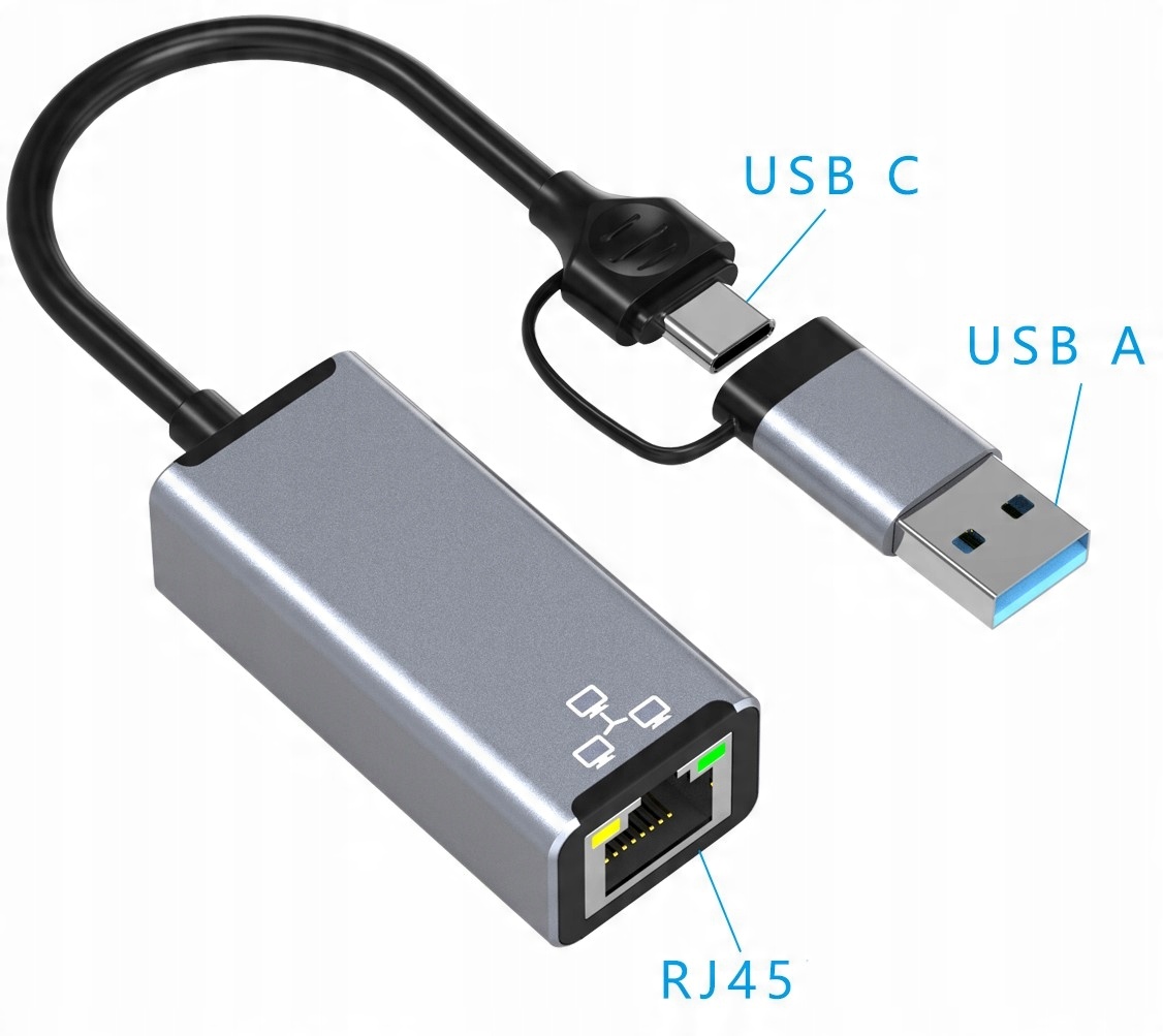 ♨️Высокая скорость, передача данных до 1000 Мбит/с — сетевой адаптер RJ45 USB A/USB C♨️