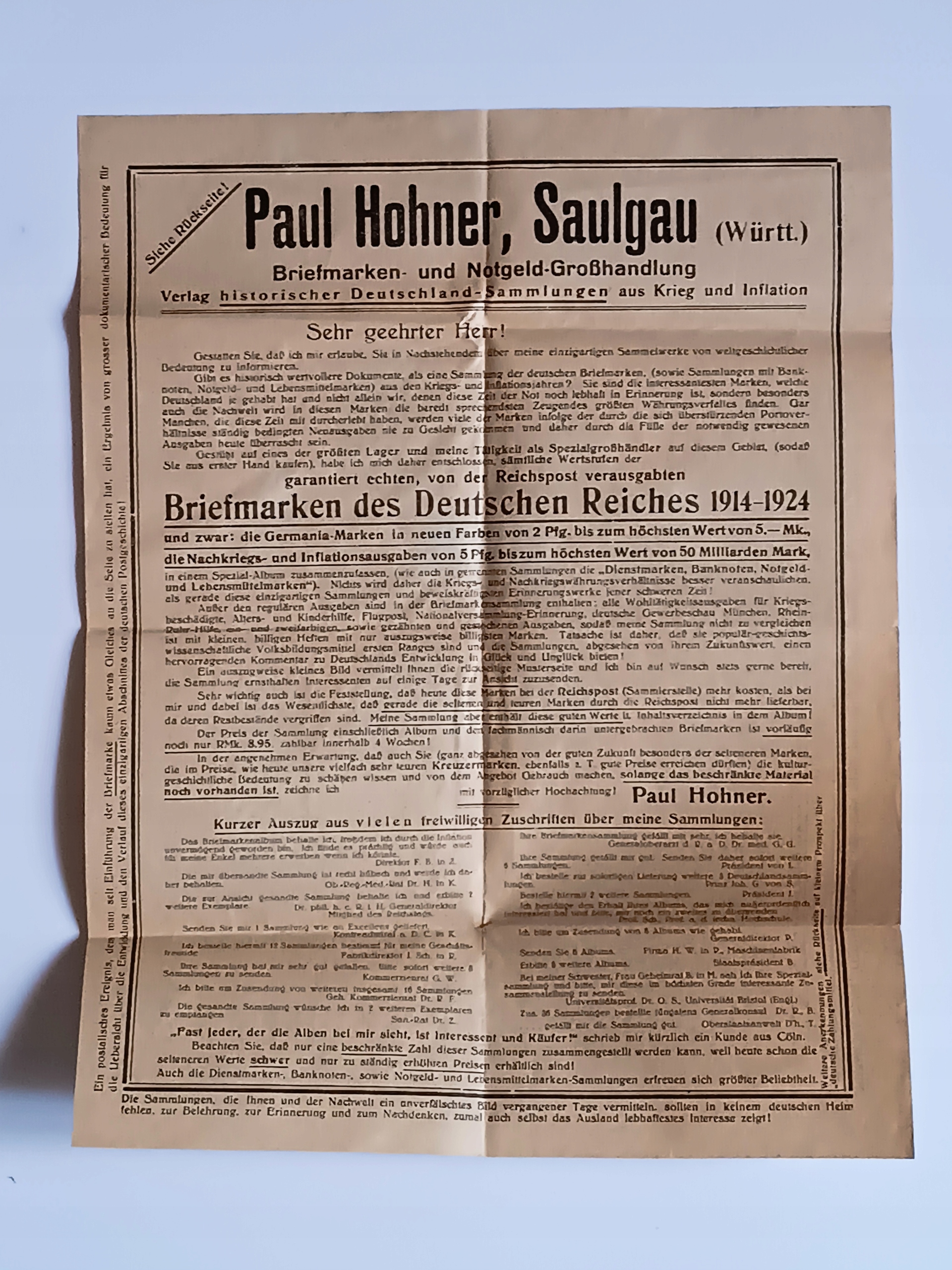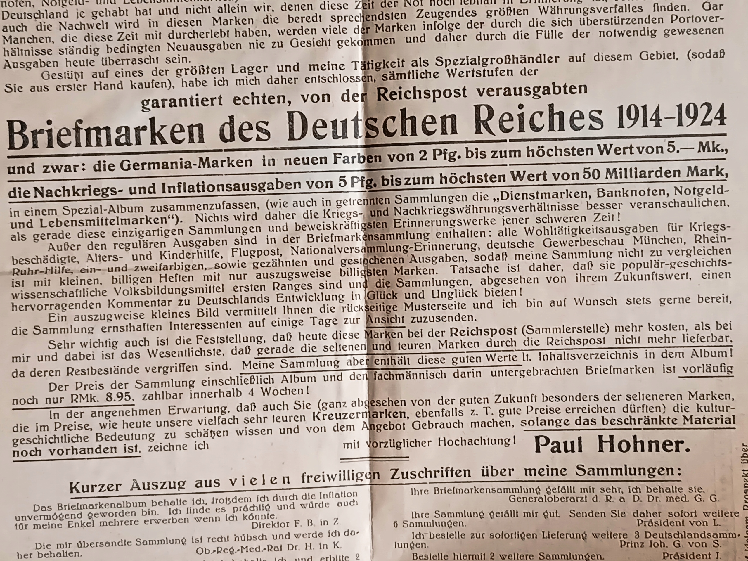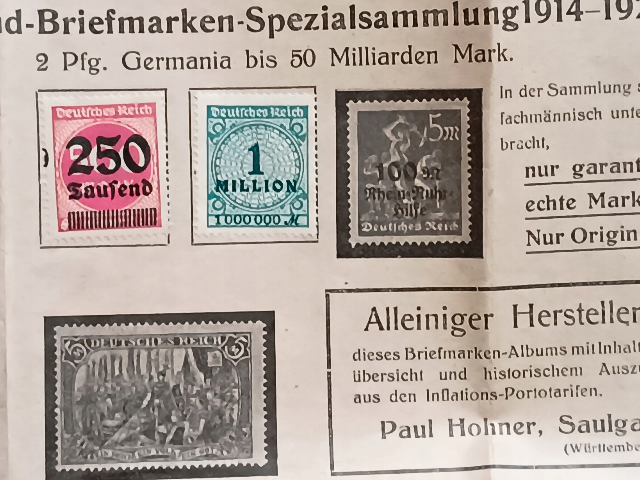Зразки спеціальної колекції марок Німеччини 1914-1924 рр