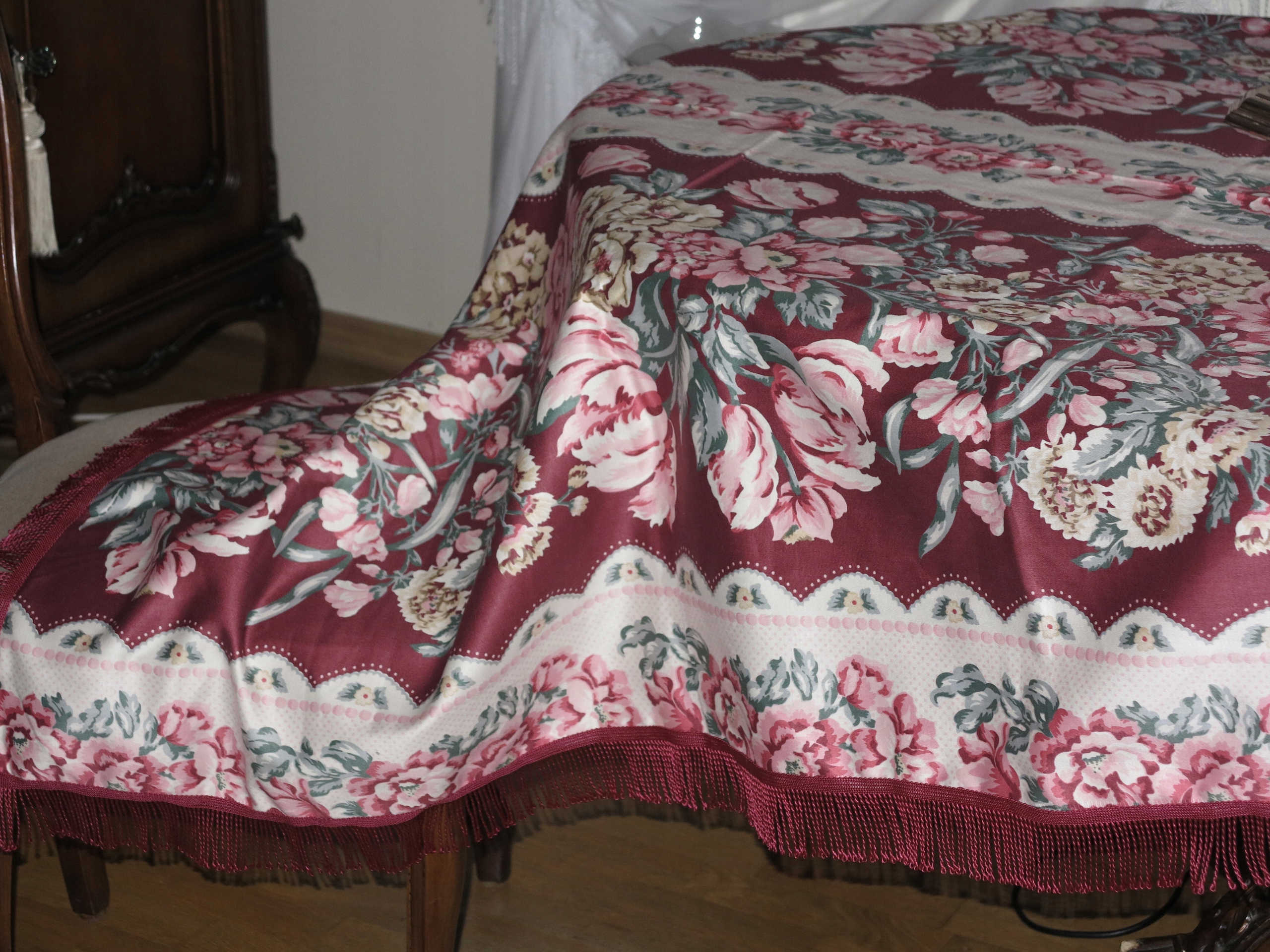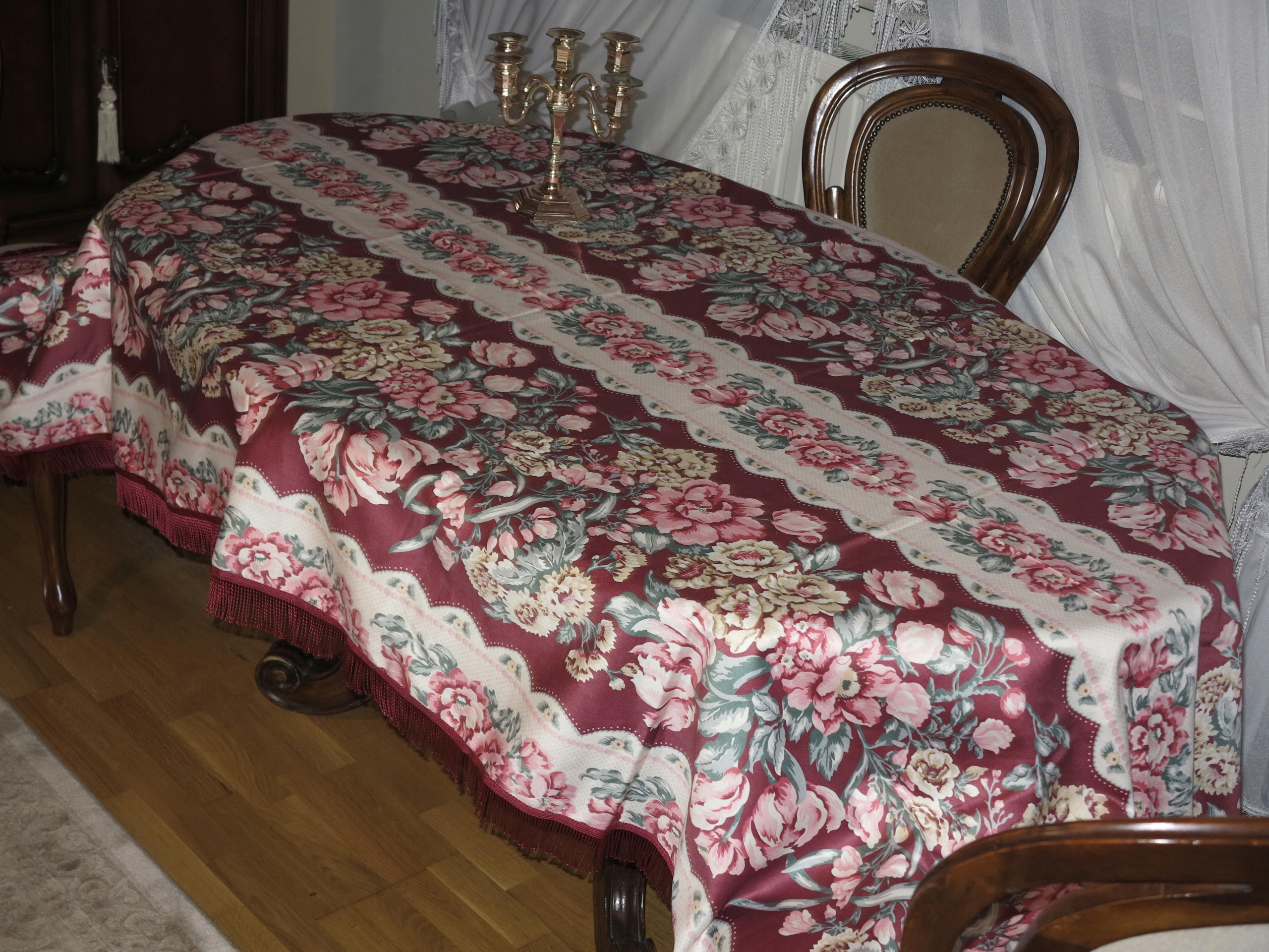 Тема аукциона - чрезвычайно красивая, английская скатерть с очень декоративными цветами, такая как окрашенная, отделанная с фринге, в таблице имеет снижения: 243/137c+ для 5CM. Используется скатерть, в идеальном состоянии и качестве. Я рекомендую, это будет красивое украшение