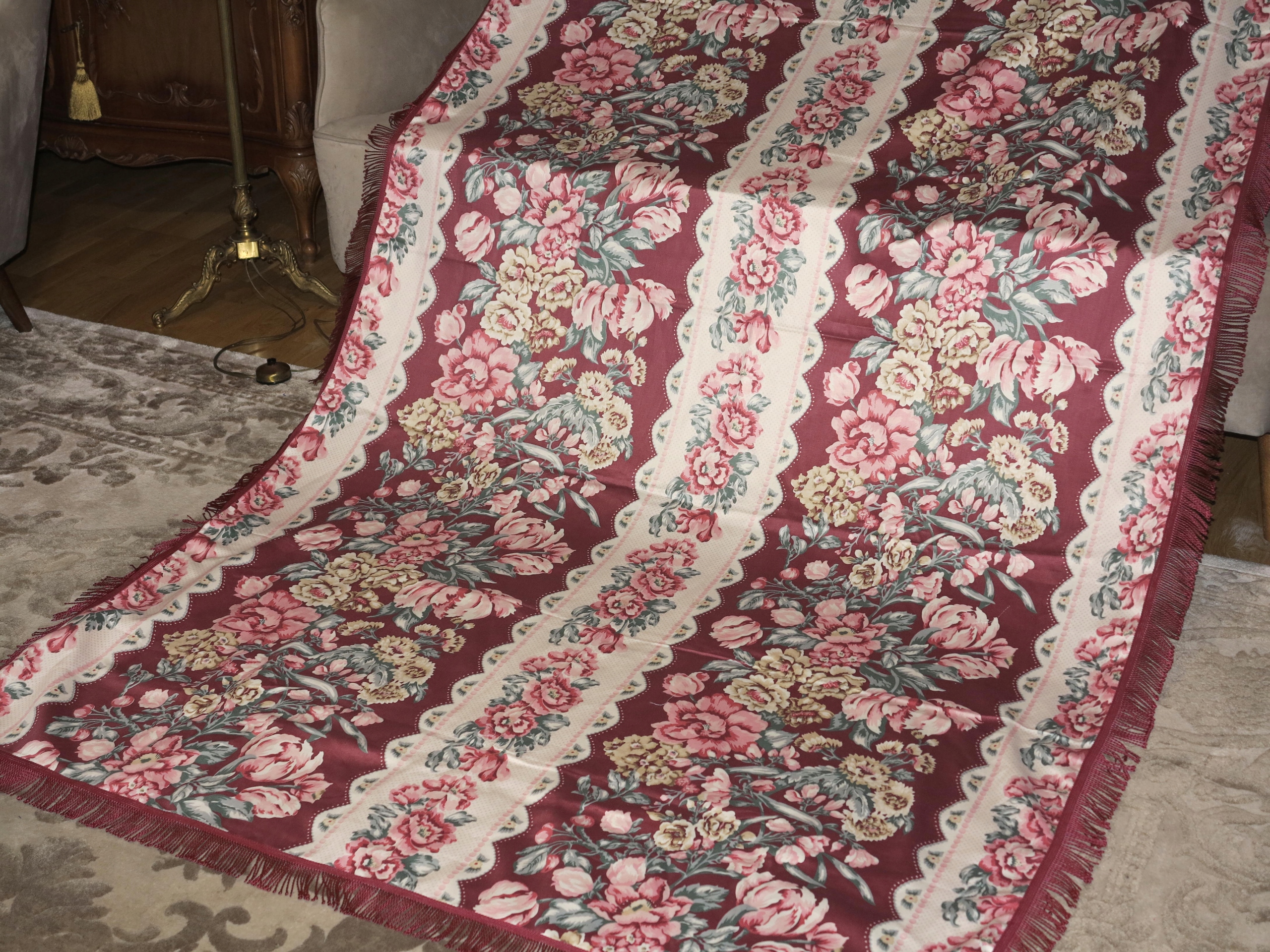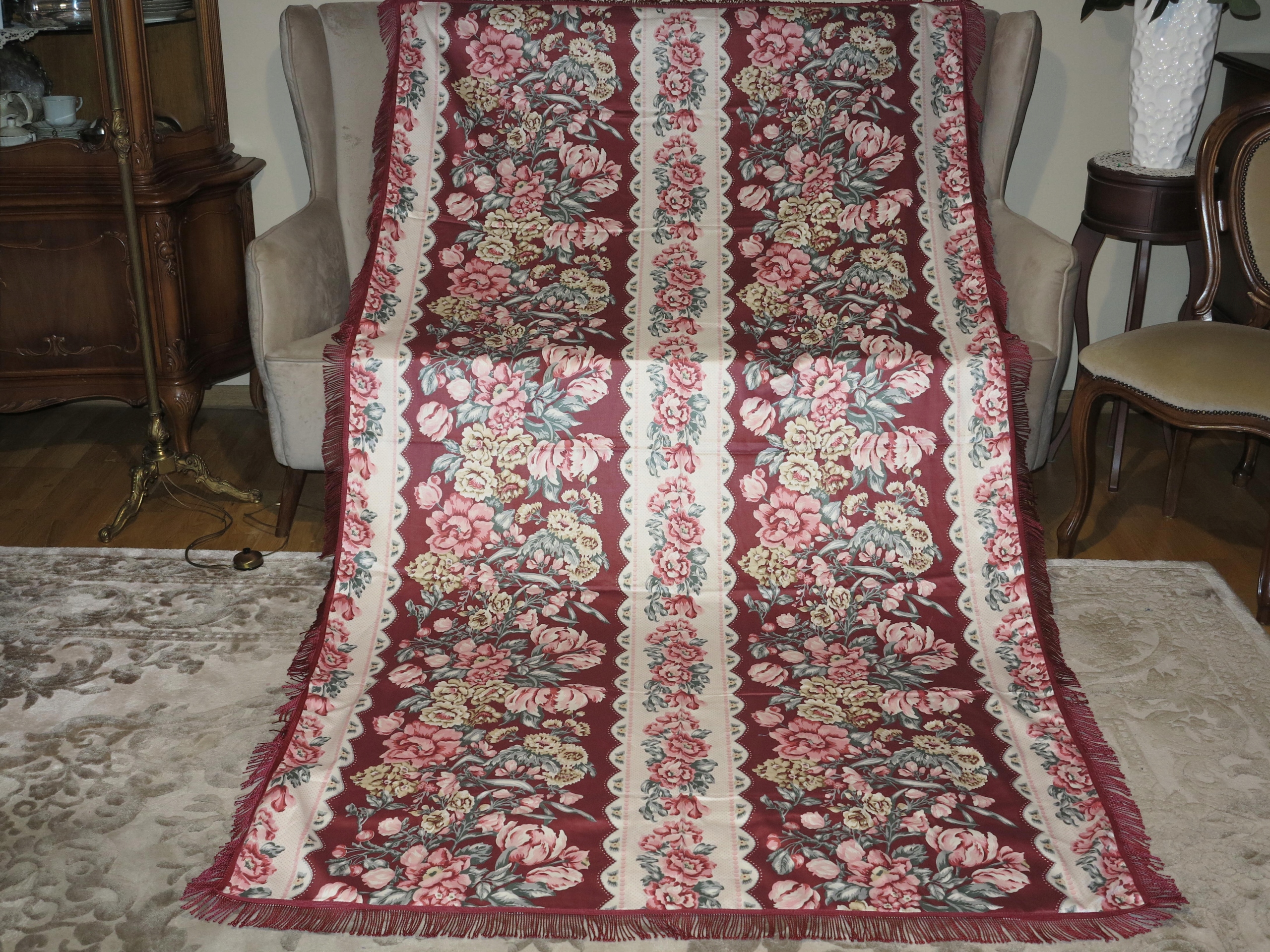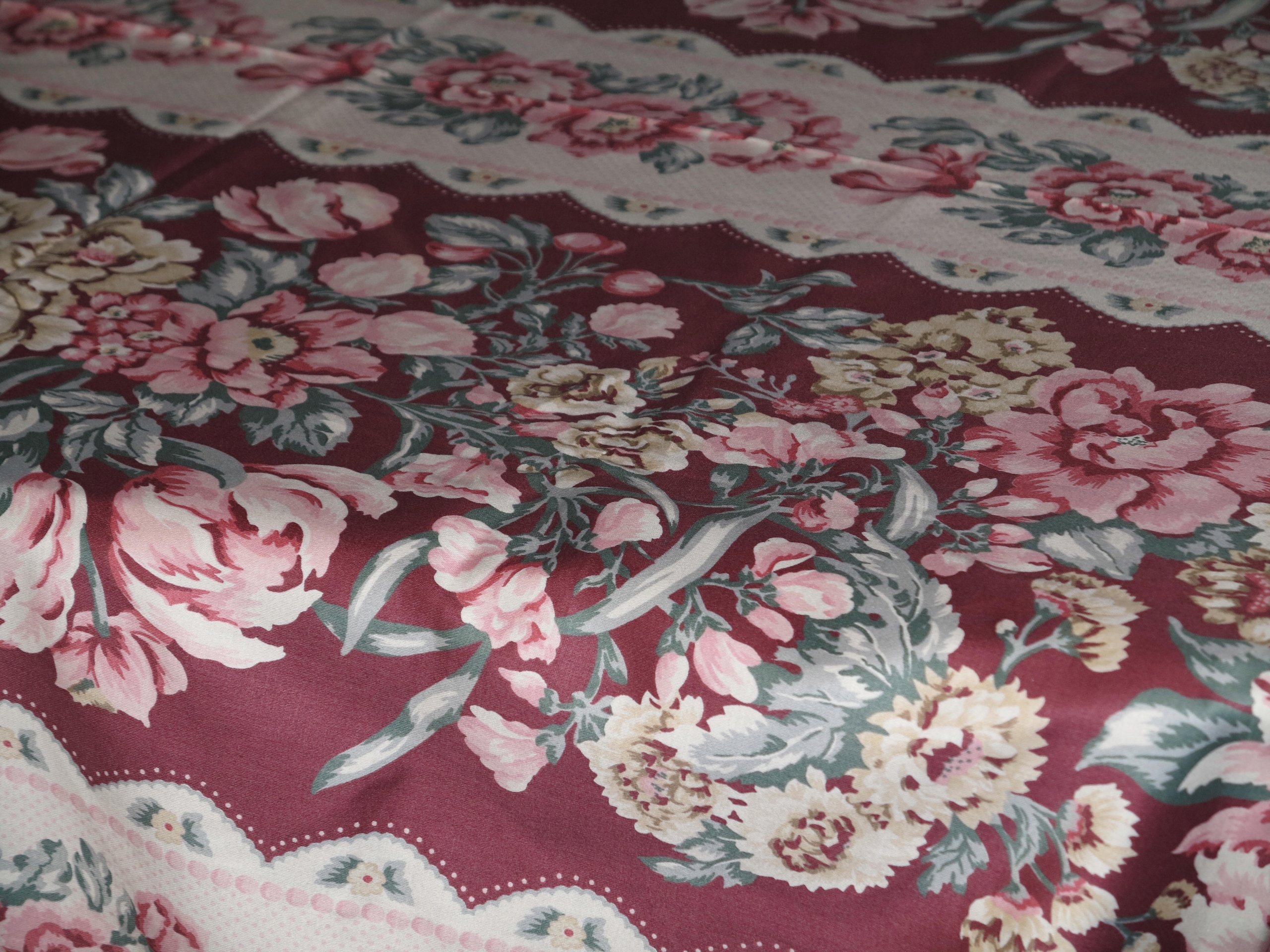 Красивый английский очень большая скатерть с отличным классическим атласом из английского хлопка с гирляндами с цветами, как окрашенные. Основной тон в Bord