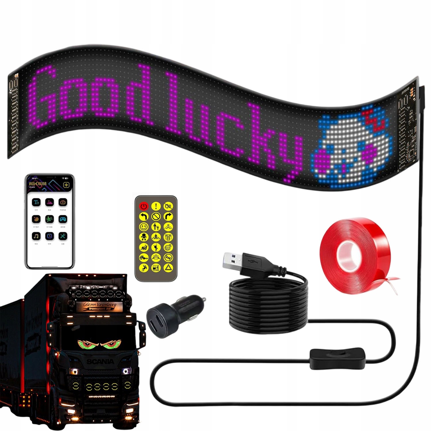 - Гибкий светодиодный дисплей для грузовиков, большой, программируемый (приложение + пульт дистанционного управления).