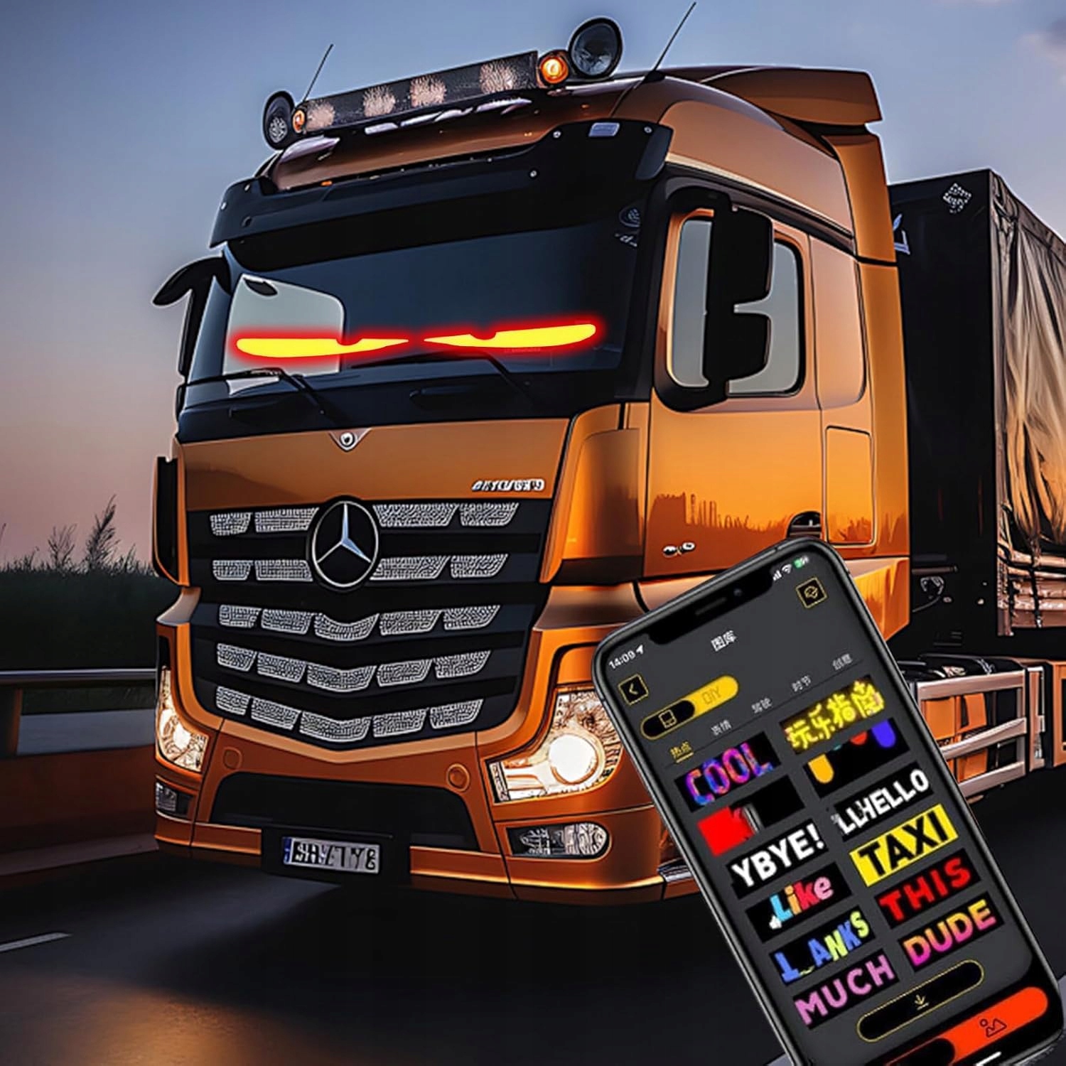 💡💡💡💡💡 h1> 🚚 Smart Demon Eye Lights в автомобилях: h1> - Светодиодное освещение в грузовиках можно легко управлять на сенсорном экране, используя специальное мобильное приложение.