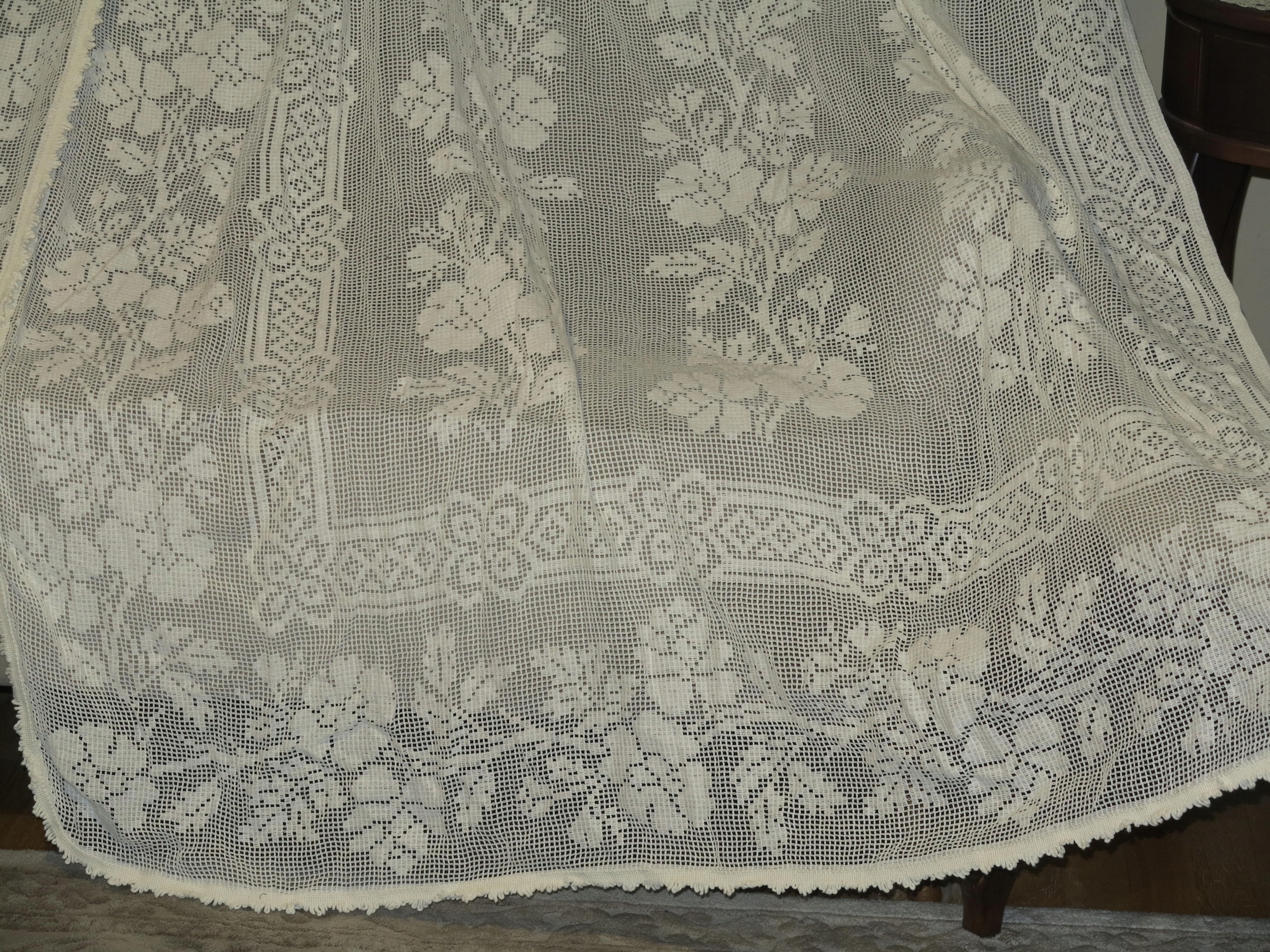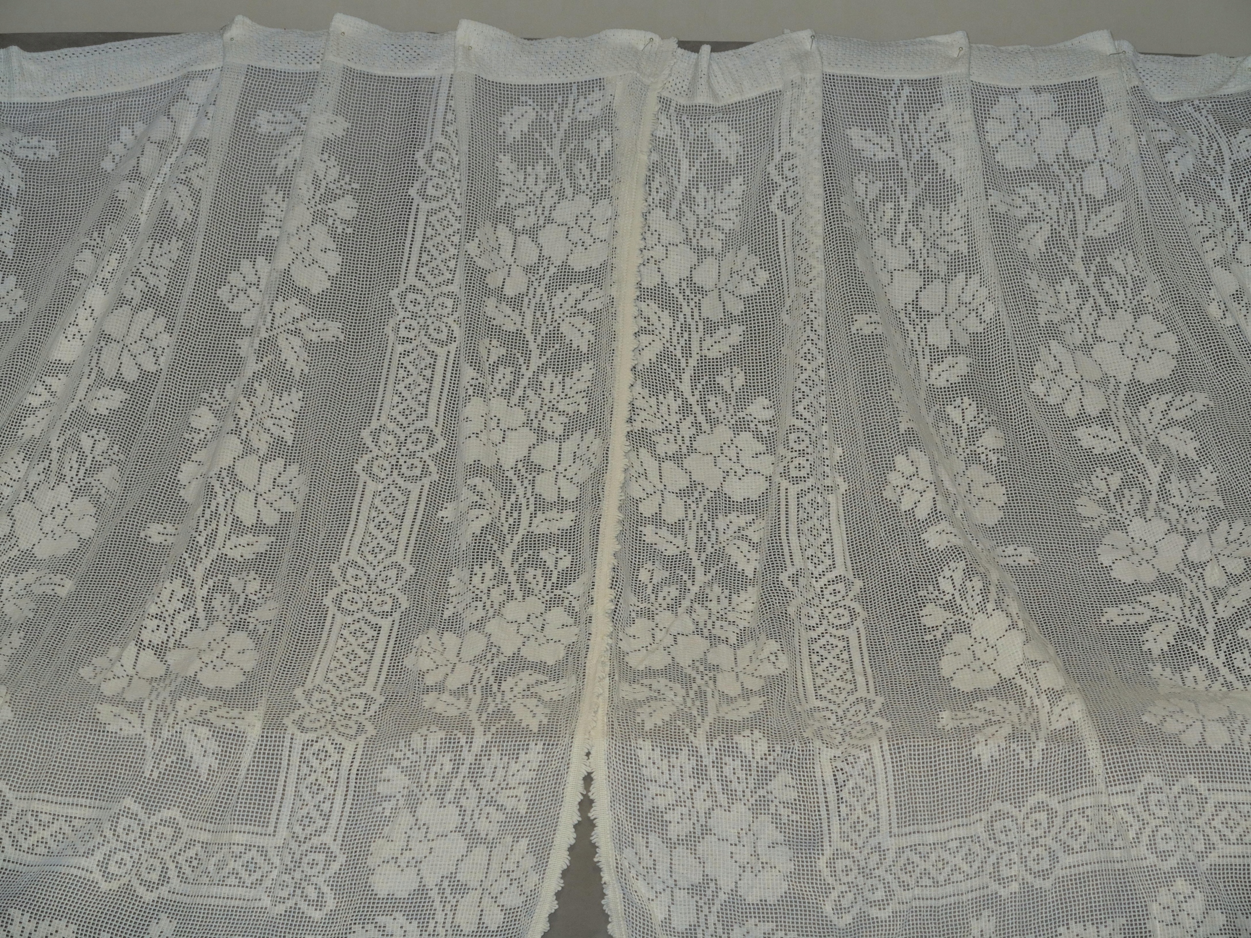 СДЕЛАНО В ПОРТУГАЛИИ - ОЧАРОВАТЕЛЬНАЯ КРУЖЕВНАЯ ШТОРА, ШТОРЫ , УЗОР АНТИКВАРНОЙ ГИРЛЯНДЫ РОЗ. КОМПЛЕКТ