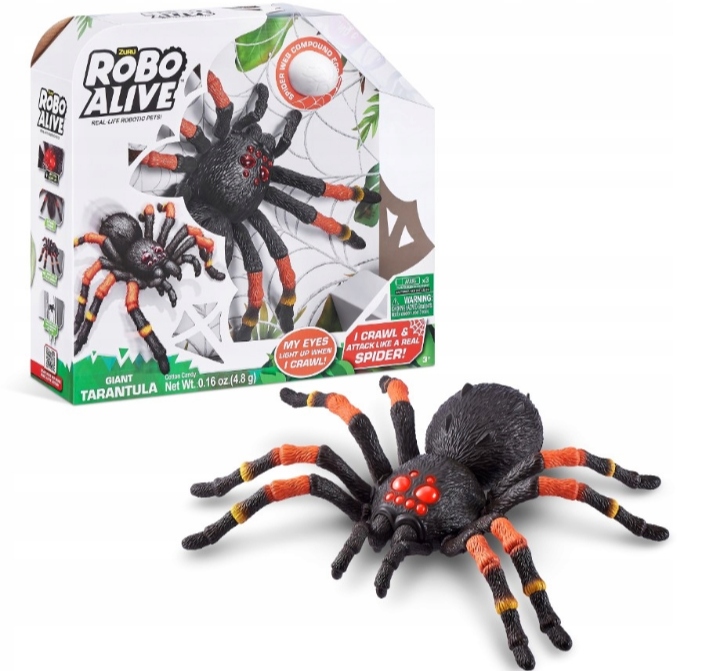 Робо-живой гигантский тарантул!!! Этот жуткий паук использует интеллектуальную технологию движения, чтобы имитировать настоящего паука! Спрячьте гигантского тарантула под обеденным столом, чтобы напугать семью, или положите его в рюкзак братьев и сестер, чтобы разыграть их в школе. Ночные ужасы стали еще страшнее с Robo Alive Giant Tarantula!