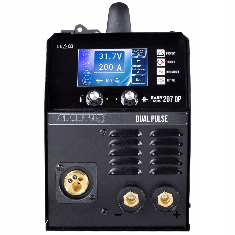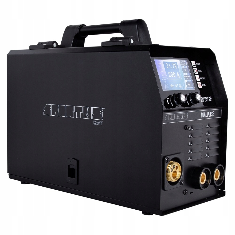 Сварочный аппарат SPARTUS Easy MIG 207 DP — современный инверторный сварочный полуавтомат на базе IGBT-транзисторов >. Обеспечивает синергетическую сварку MIG/MAG с двойной пульсацией, синергетическую сварку MIG/MAG с одиночной пульсацией, сварку MIG/MAG в синергетическом режиме, сварку b>MIG/MAG в режиме ручных настроек, сварка TIG Lift, сварка MMA покрытым электродом. Максимальный сварочный ток для методов MIG/MAG/TIG/MMA составляет 200А. Устройство питается от однофазной сети 230 В.