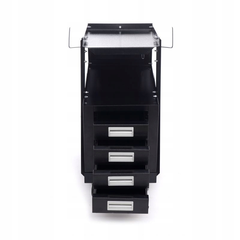 Тележка имеет удлиненную верхнюю полку и 4 ящика!