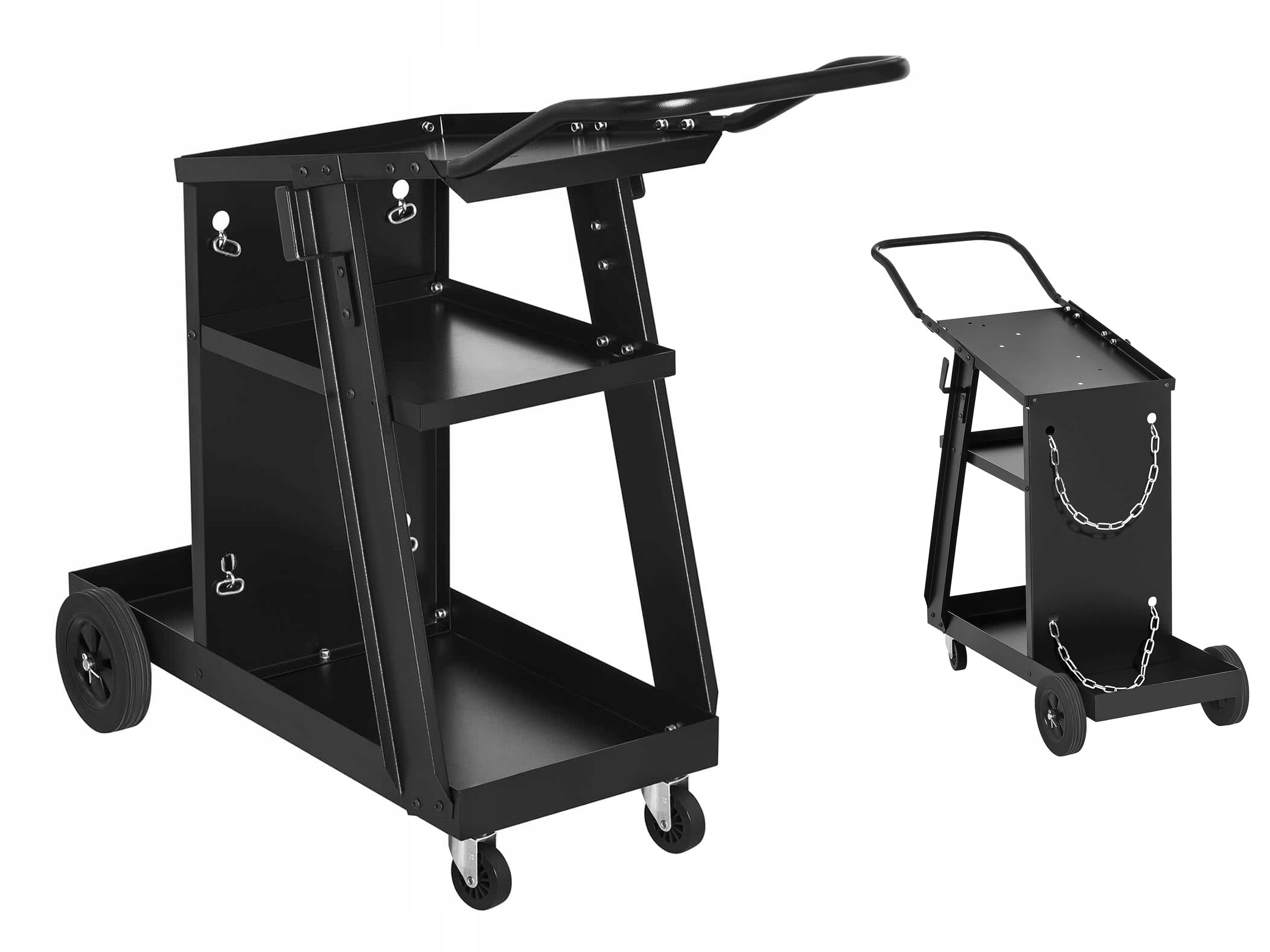 Тележка изготовлена из прочного стального листа толщиной 1,5 мм и ее грузоподъемность составляет 75 кг, что позволяет транспортируют большинство моделей сварочных аппаратов или плазменных резаков.