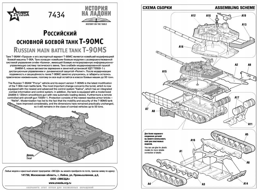 Zvezda 7434 1/100 T-90MS Советский основной боевой бак
