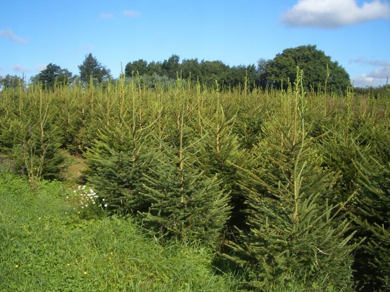 Общая ель высокая (высота около 30-40 м), аккуратное, вечнозеленое зеленое дерево с конической короной в типе классической «рождественской елки». Его ветви хорошо растут вбок, с самым старым и самым низким, расположенным с возрастом.