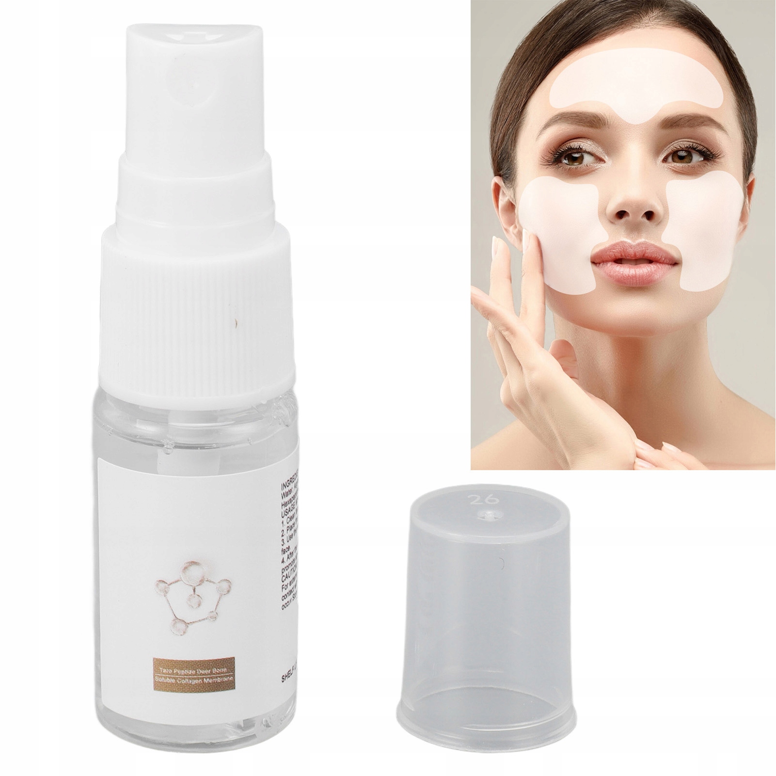 Коллагеновые срезы исчезают морщины и небольшие увлажняющие линии, укрепляя кусочки на коже лба с 10 -мл -аэрозольной сывороткой
