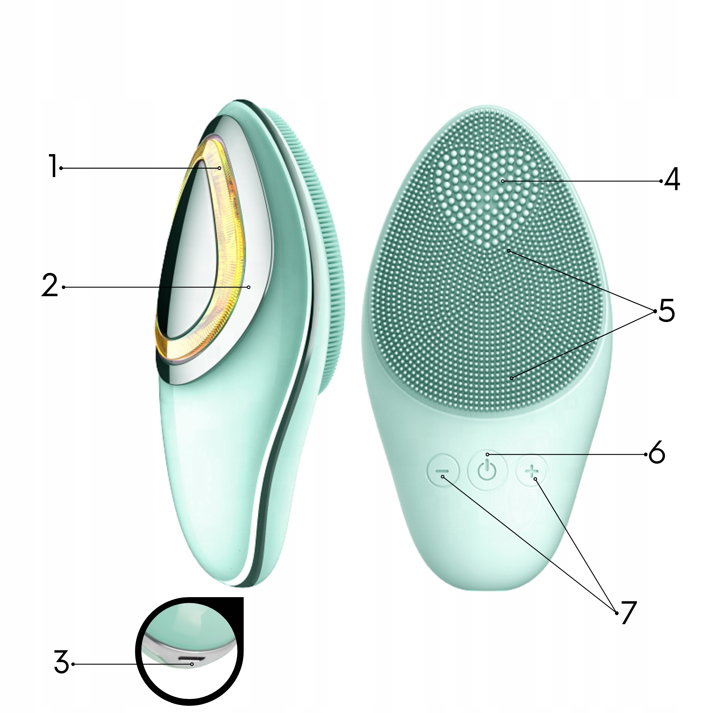 1. Звуковые пульсации + 2 вида выступов - эффективное очищение. Кисть имеет деликатные выступы, передающие на кожу звуковые пульсации, благодаря чему щетка очищает поры, освежает и разглаживает деликатные неровности и морщинки. Рекомендуется использовать продукт два раза в день. После использования нашего аппарата кожа становится очищенной, более яркой, гладкой, подтянутой и улучшается ее цвет. Уже после одного применения она выглядит более сияющей и свежей. Пульсация разбивает грязь в порах, облегчая ее удаление и улучшая впитывание питательных веществ глубоко в кожу. Пульсации — это также массаж кожи, который успокаивает, расслабляет и расслабляет.