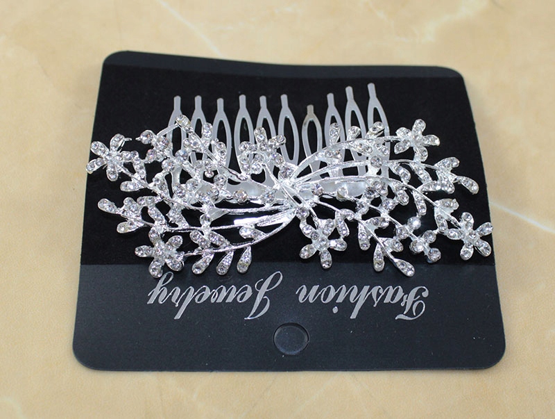 Весільний гребінець, прикрашений дрібними фіанітами на гілочках з листям. Листя та квіти всипані дрібними блискучими цирконами. Гребінець — плоска прикраса. Головний убір додасть шарму будь-якій зачісці. Коронка на гребінці тримається дуже добре. Стрази виблискують, як діаманти.