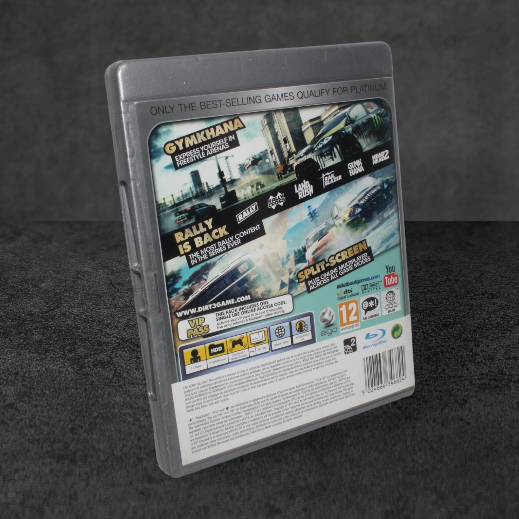 «DiRT 3» для PlayStation 3 — це динамічна гоночна гра, яка відвезуть вас на траси ралійних автомобілів з усього світу. Гра пропонує різноманітні режими гри, від класичних ралі до видовищного режиму Gymkhana, де важливий точний контроль над транспортним засобом. Відчуйте справжнє захоплення ралі завдяки реалістичній фізиці водіння та широкому асортименту автомобілів, у тому числі легендарних ралійних.
