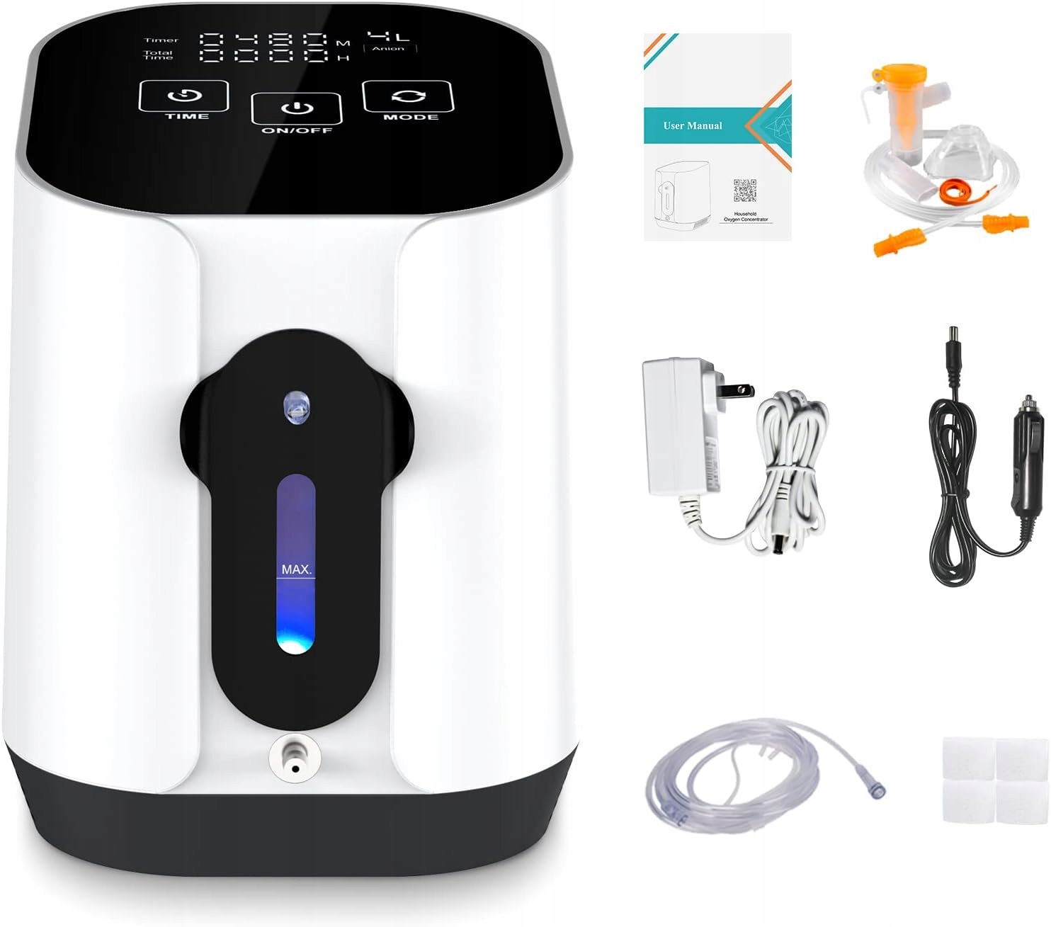Портативний кисневий концентратор Creliver, 1-4 л/хв, 90% ~ 30% з можливістю регулювання з аніонною функцією, низький рівень шуму 45 дБ, генератор кисню для дому та подорожей, використання в автомобілі