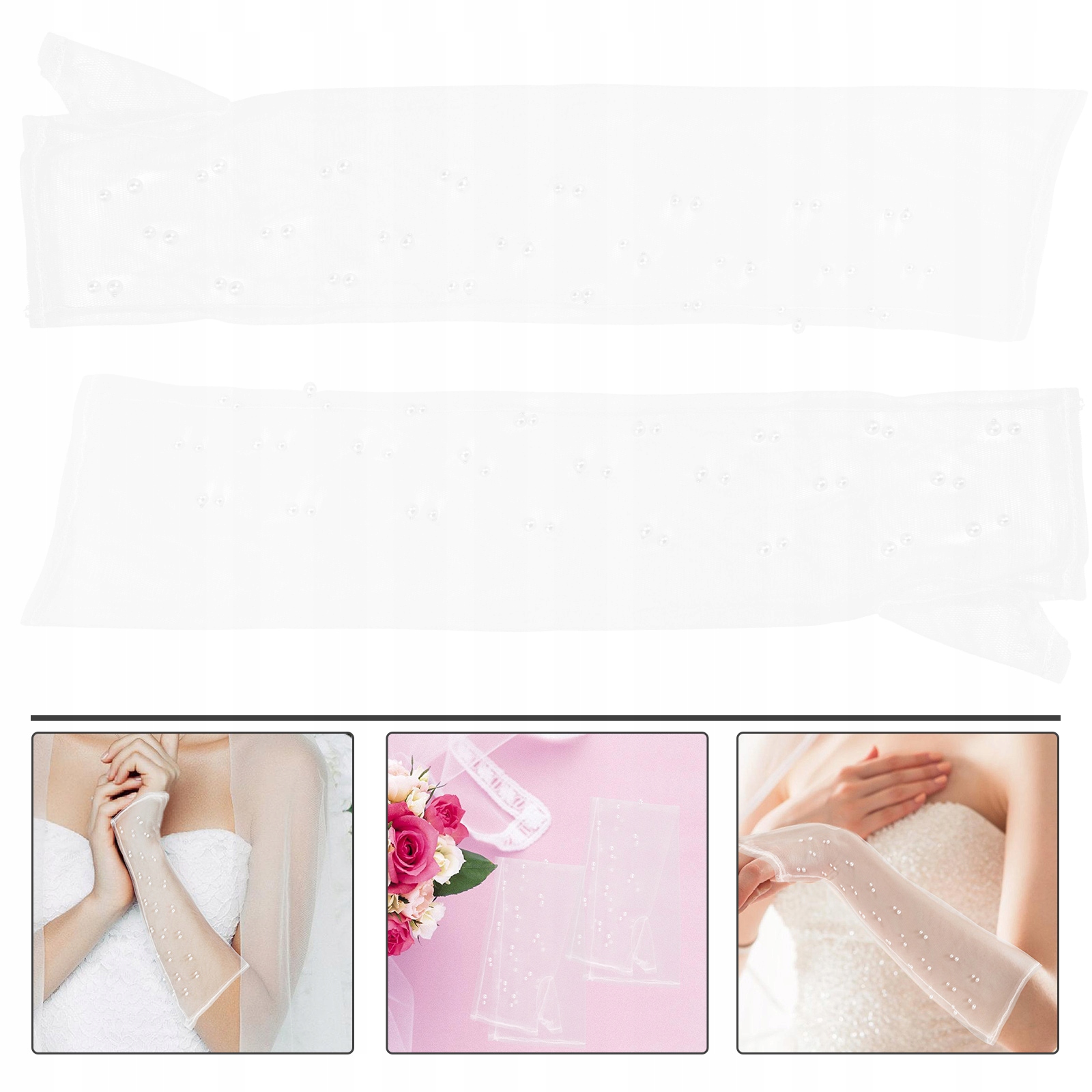 1 пара жіночих весільних тюлевих рукавичок зі штучними перлами