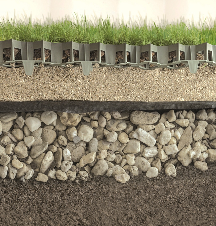 Сітка є альтернативою бруківці, асфальту чи бетону та особливо добре працюватиме в місцях, де підтримується біологічно активна поверхня. потрібен.
