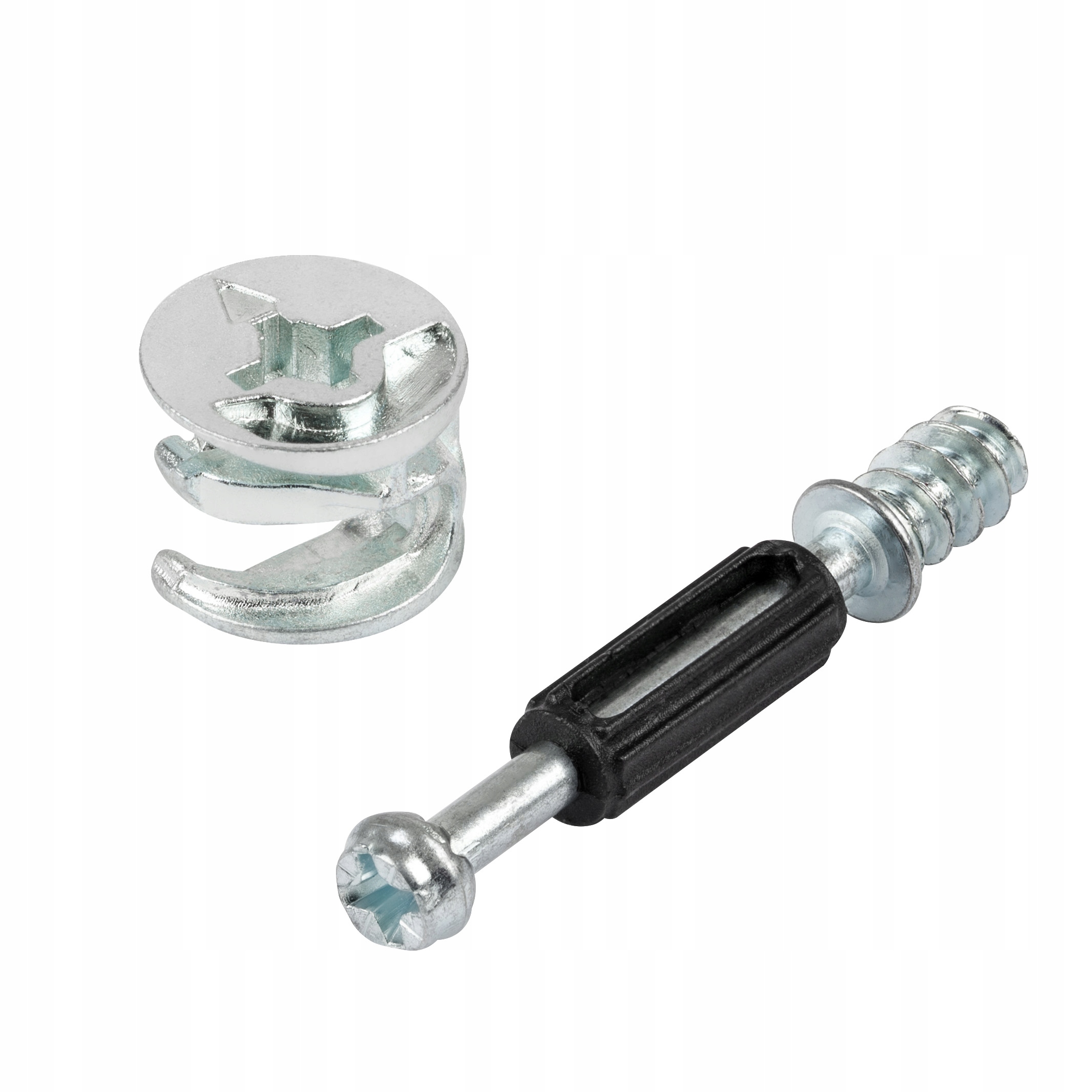 Набір містить ексцентрик (круглий елемент), який використовується для затягування з’єднання, та штифт, тобто елемент, який пригвинчується до плитних меблів за допомогою викрутки.
