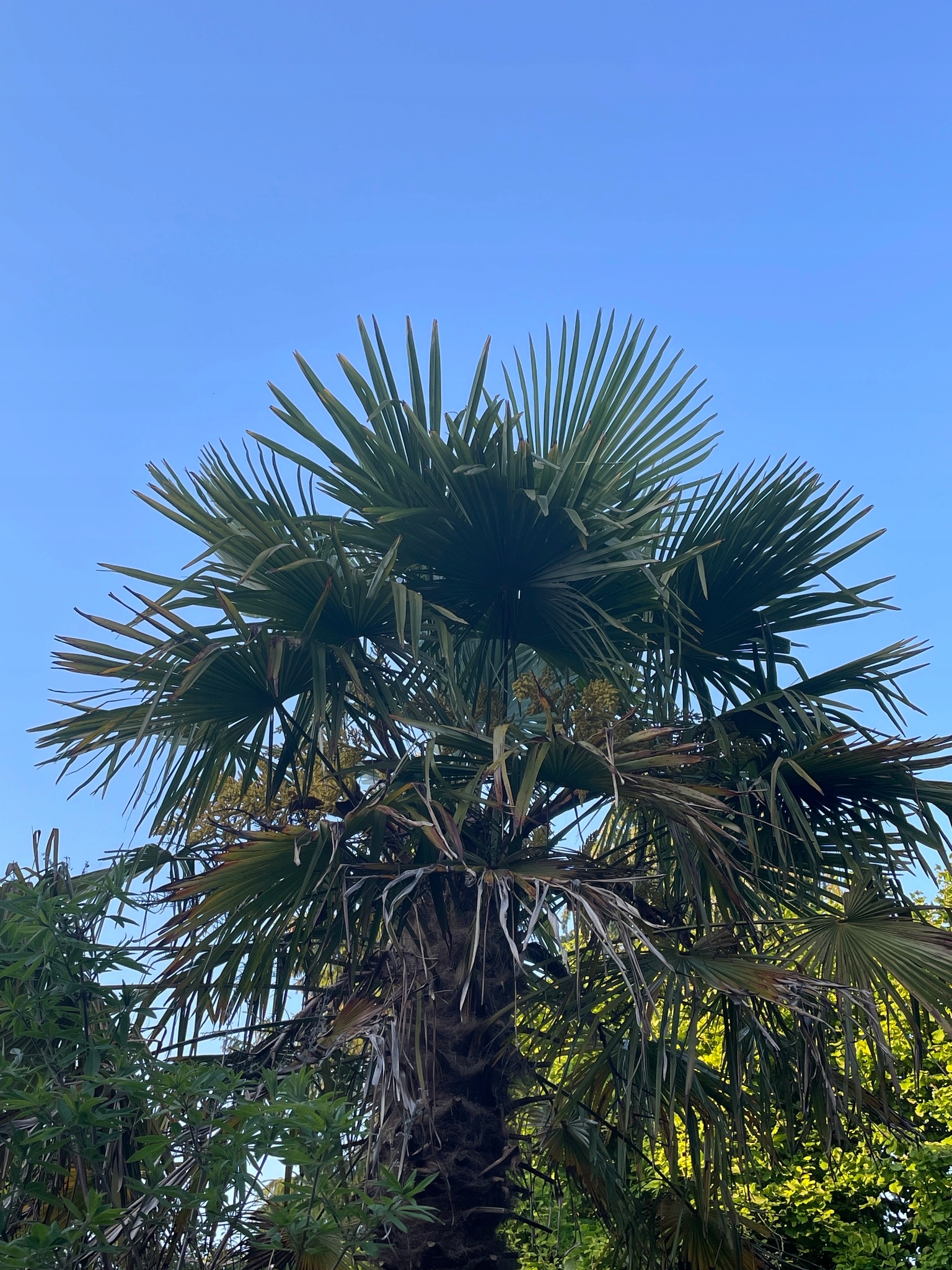 Trachycarpus fortunei, також відомий як пальма Фортуни або, рідше, пальма дрозду, є видом пальми, який у природі зустрічається у Східній Азії, головним чином у Китаї, Японії, М’янмі та Індії. Це пальма з винятковою морозостійкістю, що робить її популярним вибором у кліматичних умовах, де інші пальми можуть не вижити. Він виростає приблизно до 12-20 метрів у висоту з характерним волокнистим стовбуром, покритим старим листям, яке створює природний захист.