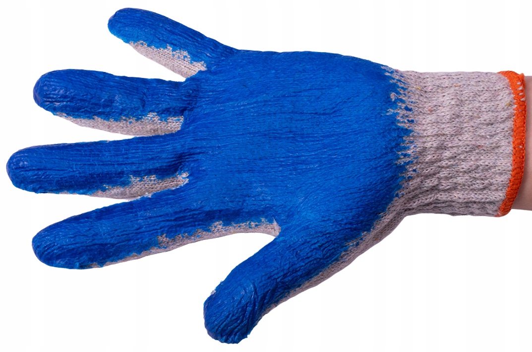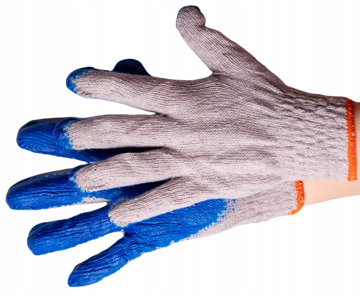 10x НОВИХ В'ЯЗНИХ БАВОВНЯНИХ РУКАВИЦЬ З ЛАТЕКСНИМ ПОКРИТТЕМ