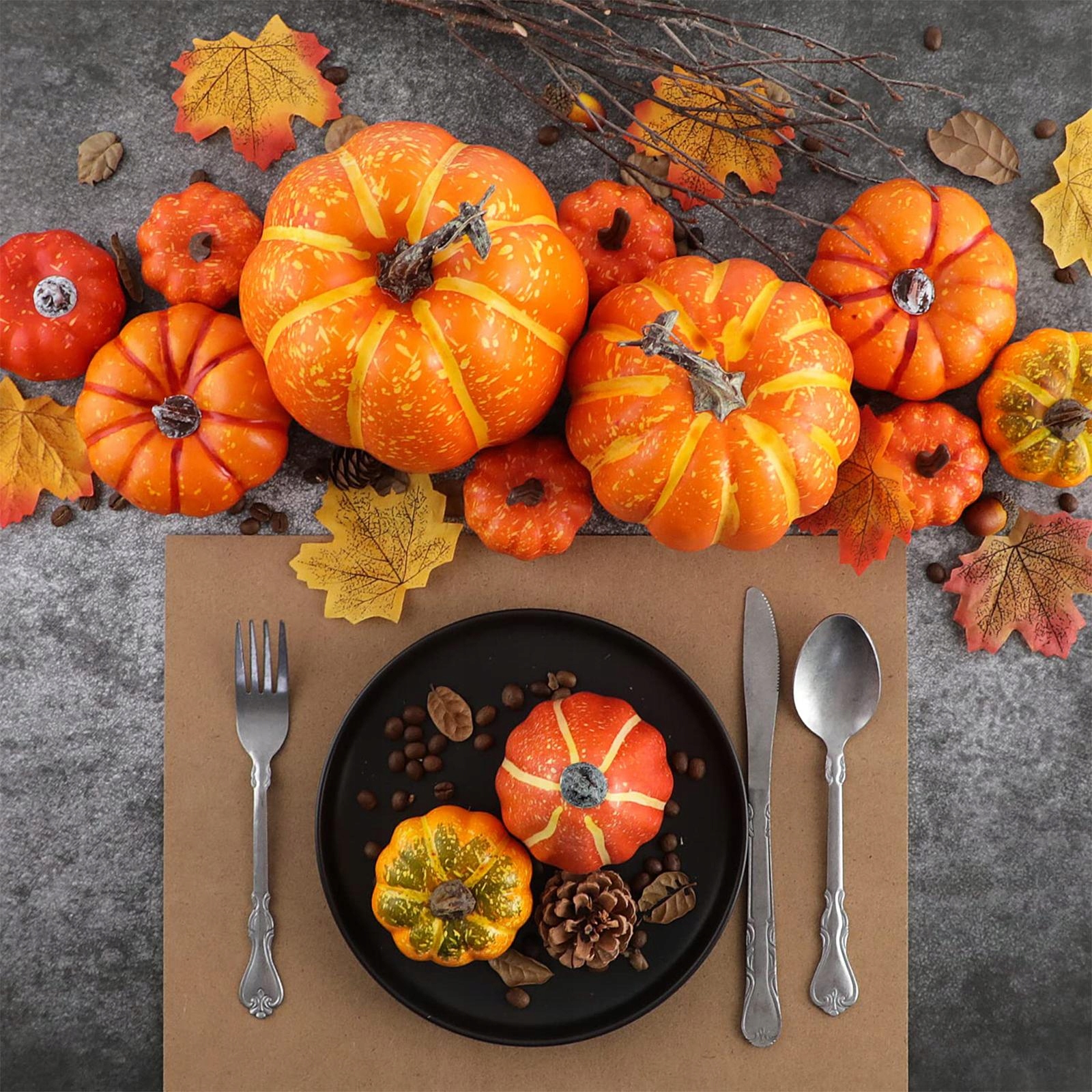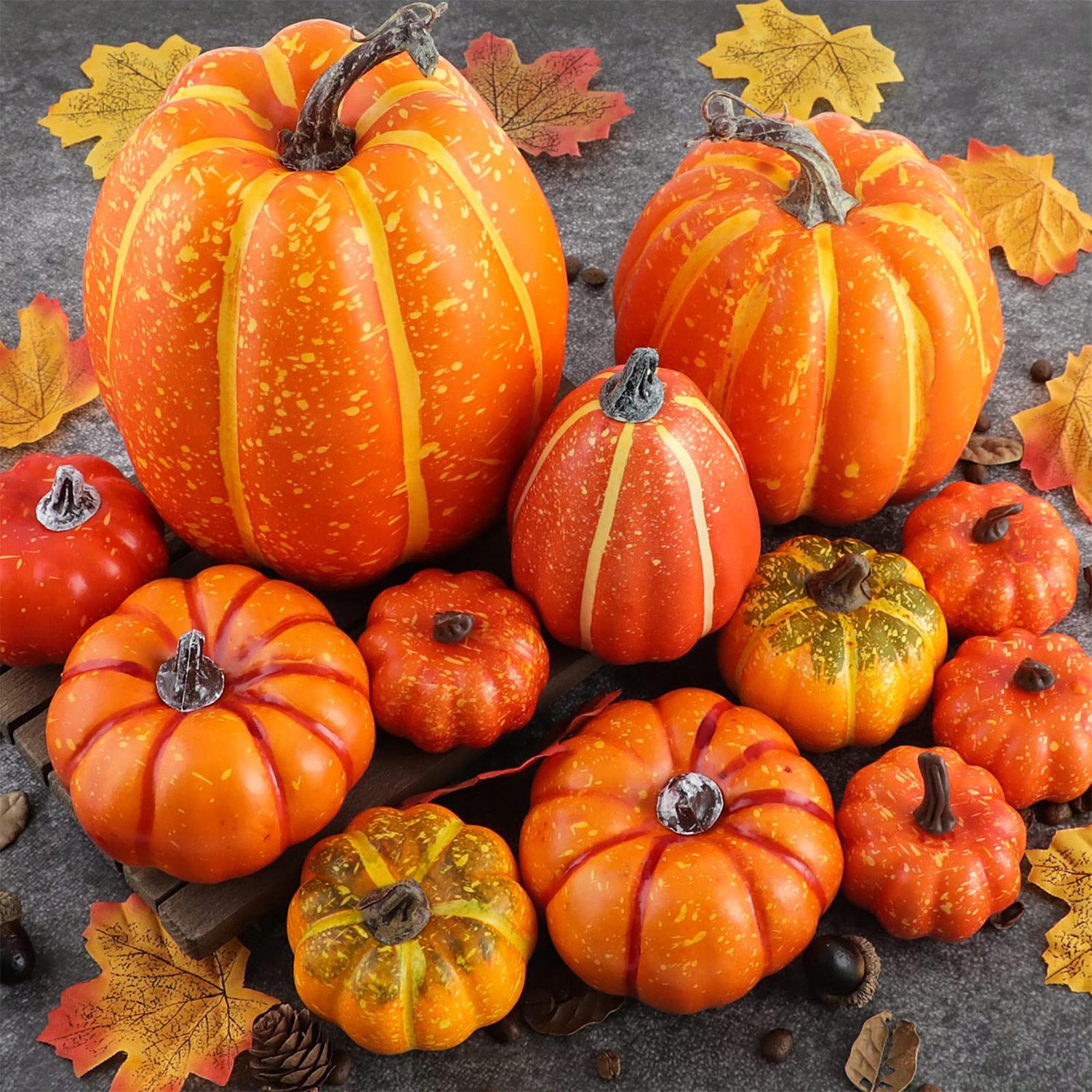 12 наборів із штучними гарбузами: гарбузові асортименти - це прикраси для вечірок з нагоди осінніх колекцій.