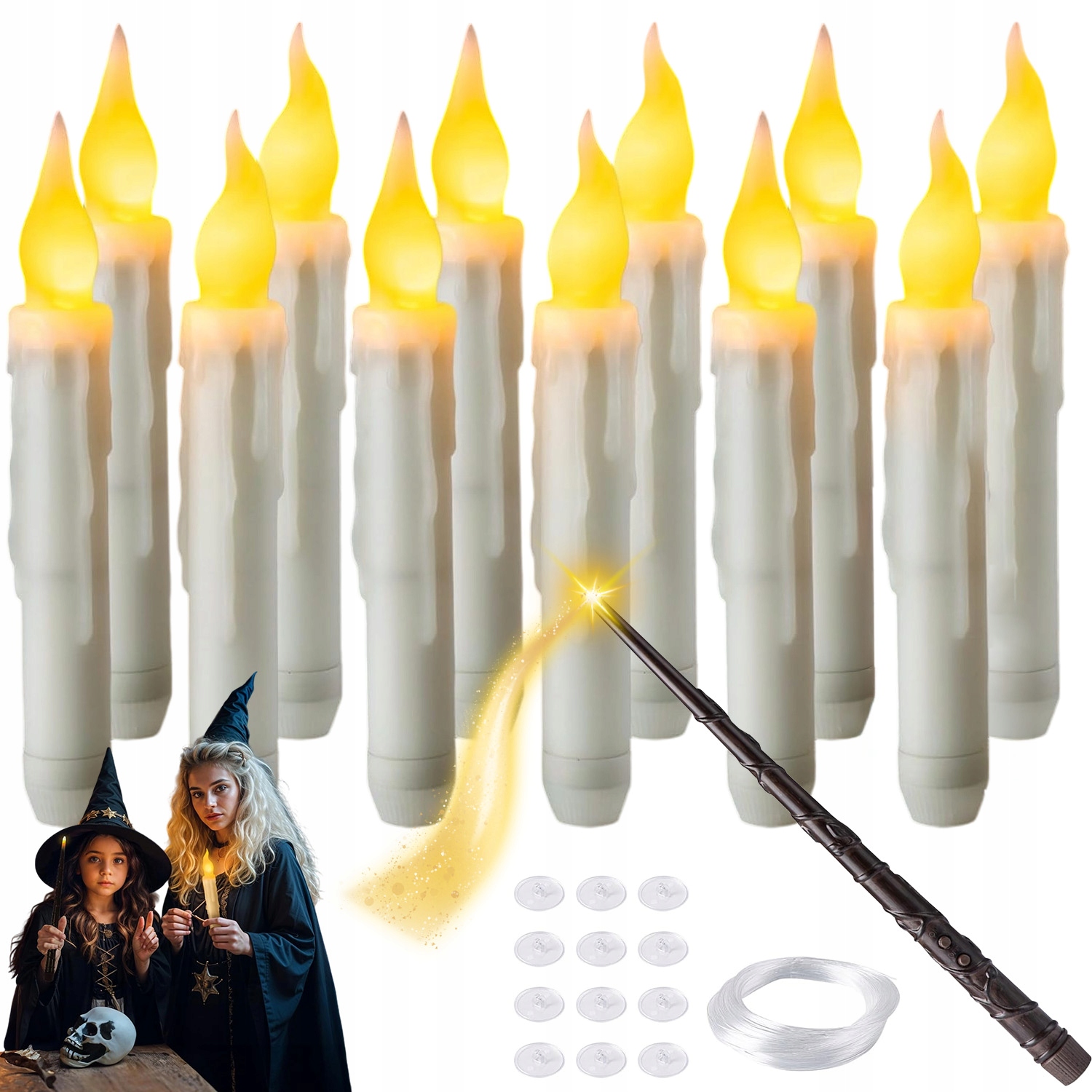 - -🕯 Вміст упаковки: Ви отримаєте 12 світлодіодів, 12 самоклеївних гачків, пульт дистанційного керування з чарівною паличкою та 20-метровим валиком кабелю. Приєднуйтесь до чарівного світу!