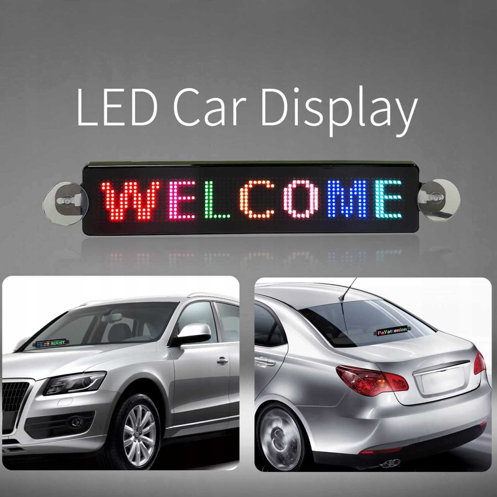 4. Встановлення на присосці: цей світлодіодний екран оснащено присосками, які добре вбираються, і їх можна легко прикріпити до вікна автомобіля, підголівника та стіни, додаючи прикраси інтер’єру.