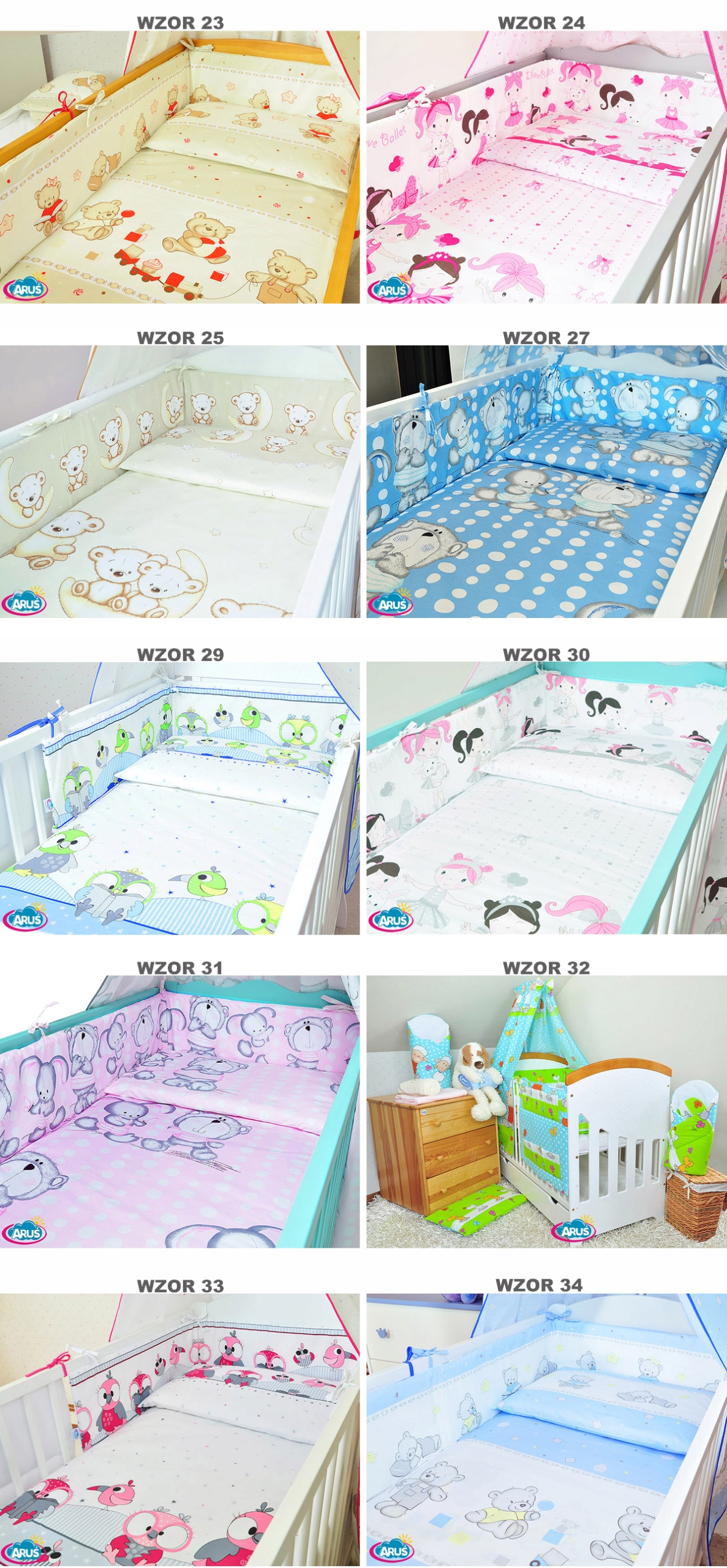 7. Протектор бампера 180 х 20 см - це ідеальний захист для голови вашої дитини. Ми ЄДИНА компанія на Allegro, яка пропонує його з жорсткого поролону товщиною 2 см (а не тонкого флізеліну, як інші). Тільки така товщина і жорсткість забезпечує ідеальний захист від ударів об щаблі. Протектор має вшиті ремені для кріплення до ліжка. Шнурки виготовлені того ж кольору, що й постільна білизна.