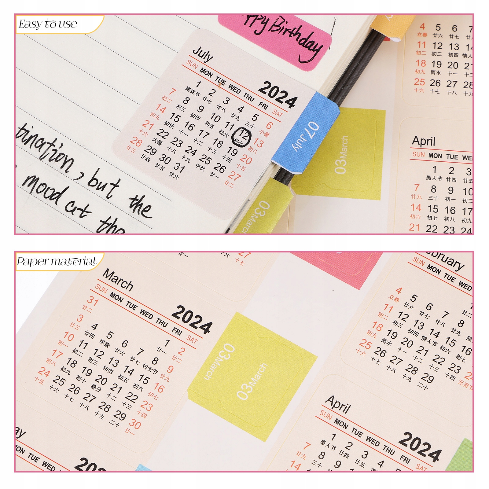 ✅Паперовий матеріал: ці наклейки виготовлені з паперового матеріалу, їх можна легко відірвати та не пошкодити сторінки календаря, забезпечуючи тривале використання.