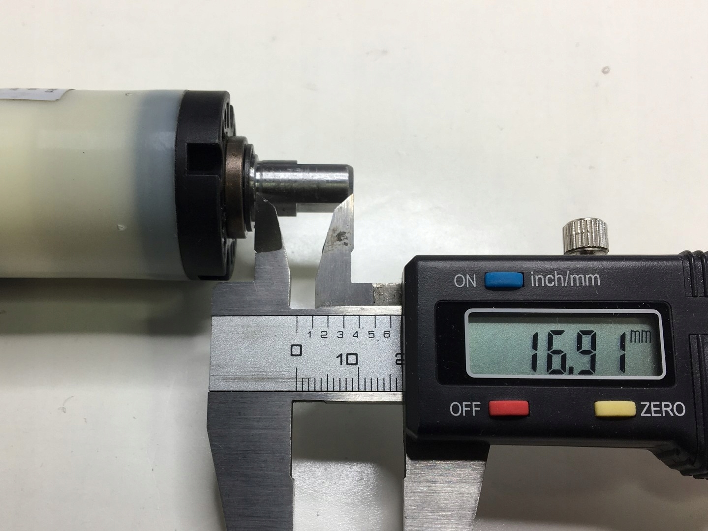 - довжина всієї збірки: 16 см (від двигуна до кінця осі редуктора) + 50 мм вісь для кодера