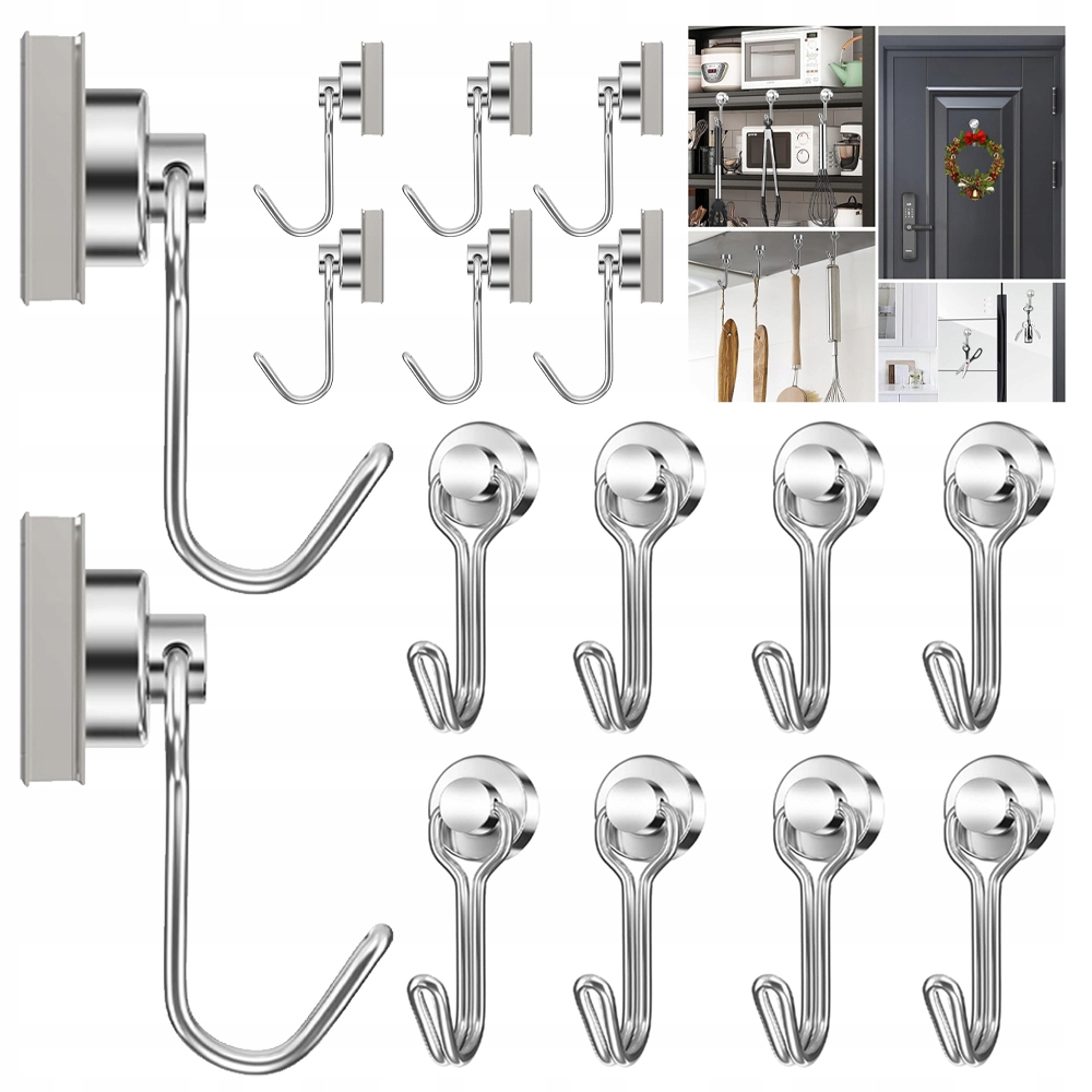 16X HACZYKI MAGNETYCZNE, WYTRZYMAŁE, WISZĄCE, POTĘŻNE HACZYKI MAGNETYCZNE